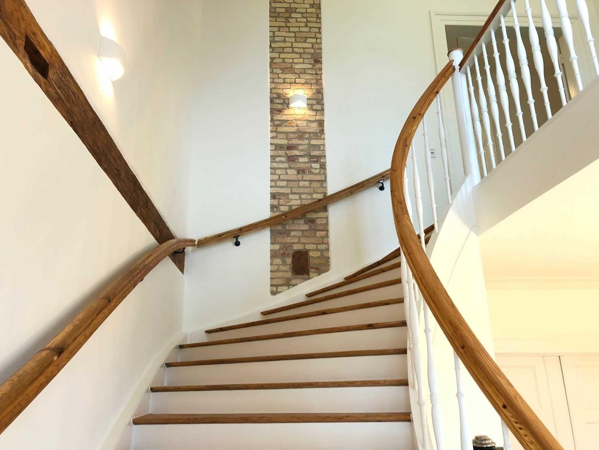 Die Ferienwohnung Herrenhaus V im Obergeschoss mit Blick auf den Garten und den See bietet mit Infrarotkabine, Whirlbadewanne und Kaminofen moderne Ausstattung kombiniert mit historischem Ambiente. Auf dem Schlafboden Hems fühlen sich nicht nur kleine Gäste außerordentlich wohl.
