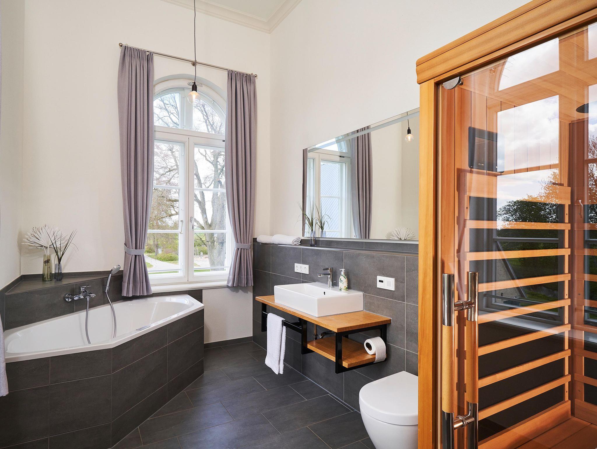 - Vollbad mit Infrarotkabine, Whirlbadewanne und Dusche; Handtücher inklusive
