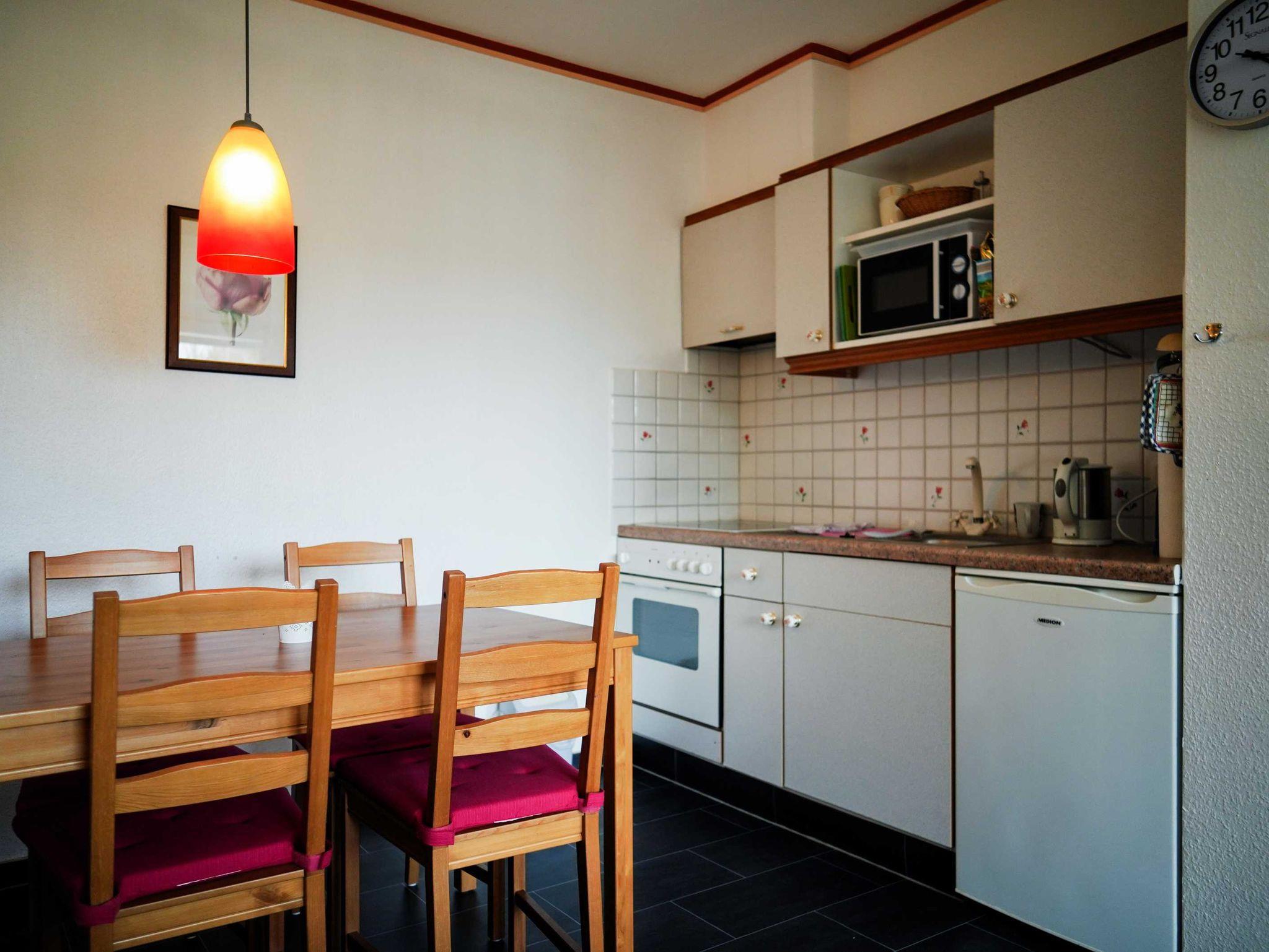 In unserer im Erdgeschoss gelegenen 45 qm großen Wohnung Rosenstube gibt es nichts ohne Rosen. Vom lichtdurchfluteten Wohnbereich blickt man direkt auf den Sattelplatz. Die Ferienwohnung verfügt über einen Wohnraum mit Küche, zwei Schlafzimmer (1x mit Doppelbett, 1x mit Etagenbett), ein Bad mit Dusche und WC sowie eine eigene Terrasse.
