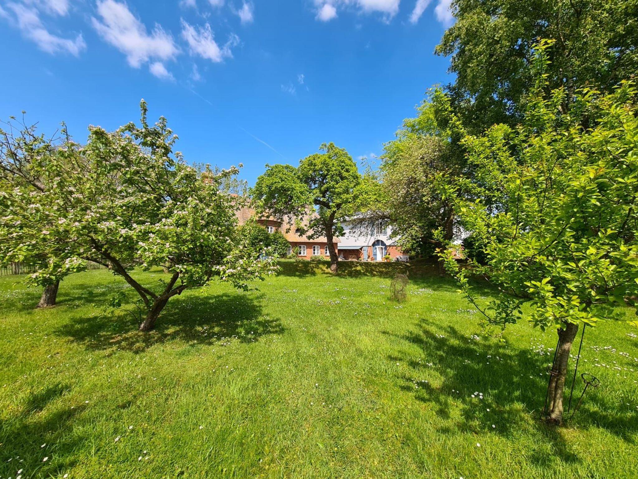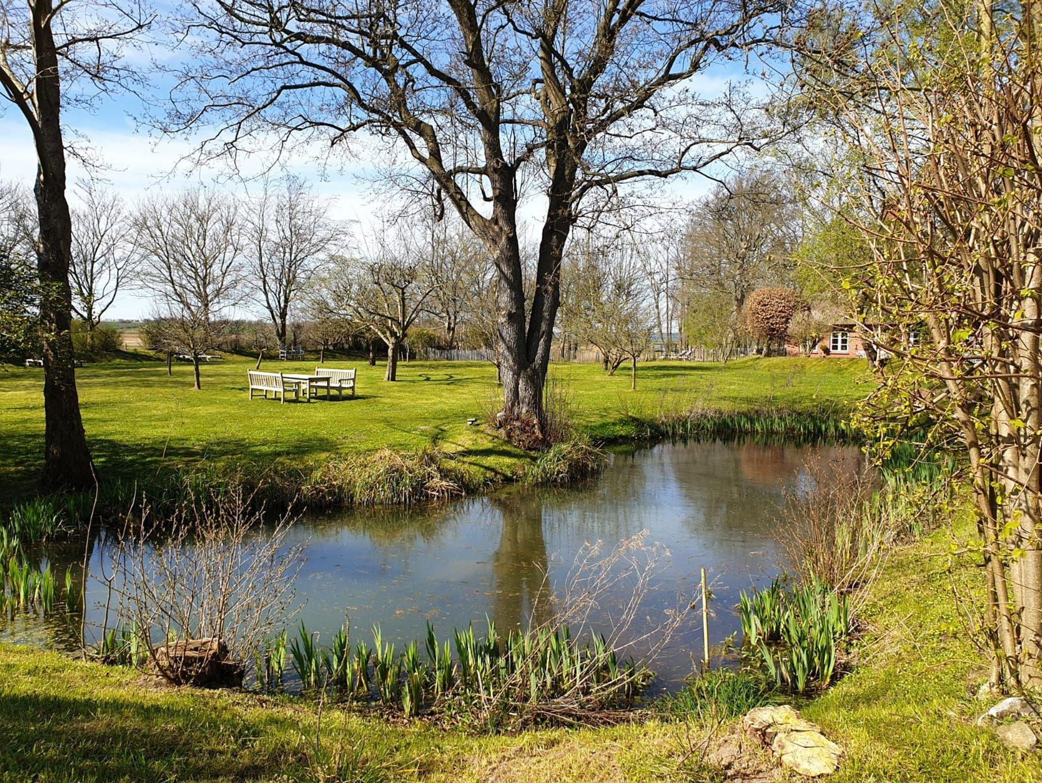 Das parkähnliche Grundstück mit Teichen, alten Bäumen und einer Streuobstwiese lädt zum Verweilen und Entspannen ein. Das angrenzende Habernisser Moor bietet idyllische Wanderwege durch Sumpf, Wiesen und Wald bis zur artesischen Quelle oder zum Naturstrand.