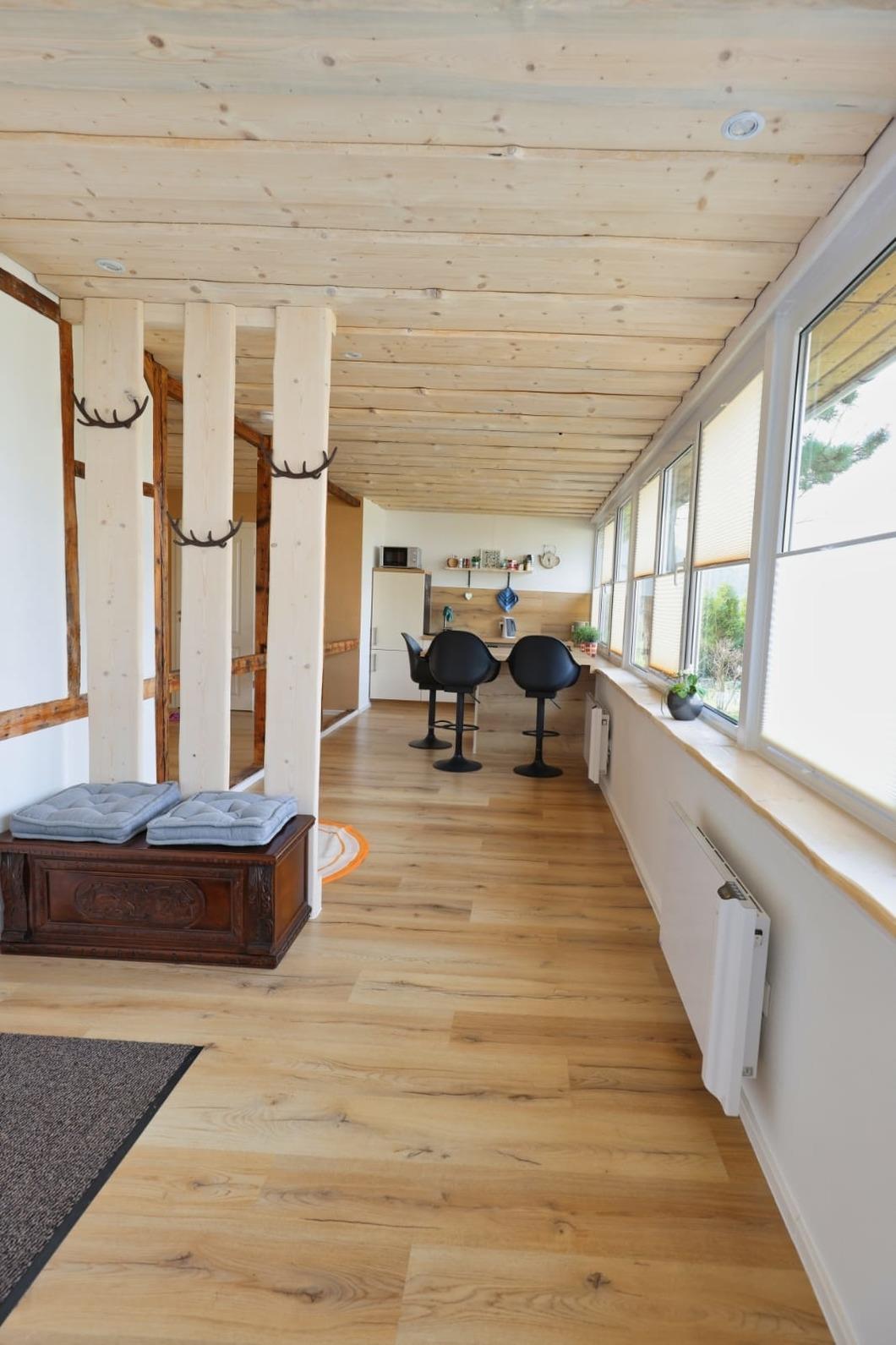Die Ferienwohnung befindet sich in einem großen Bungalow direkt mit Blick auf den Kuhberg. Das alte Fachwerk wurde komplett saniert und im Frühjahr 2021 fertiggestellt.
