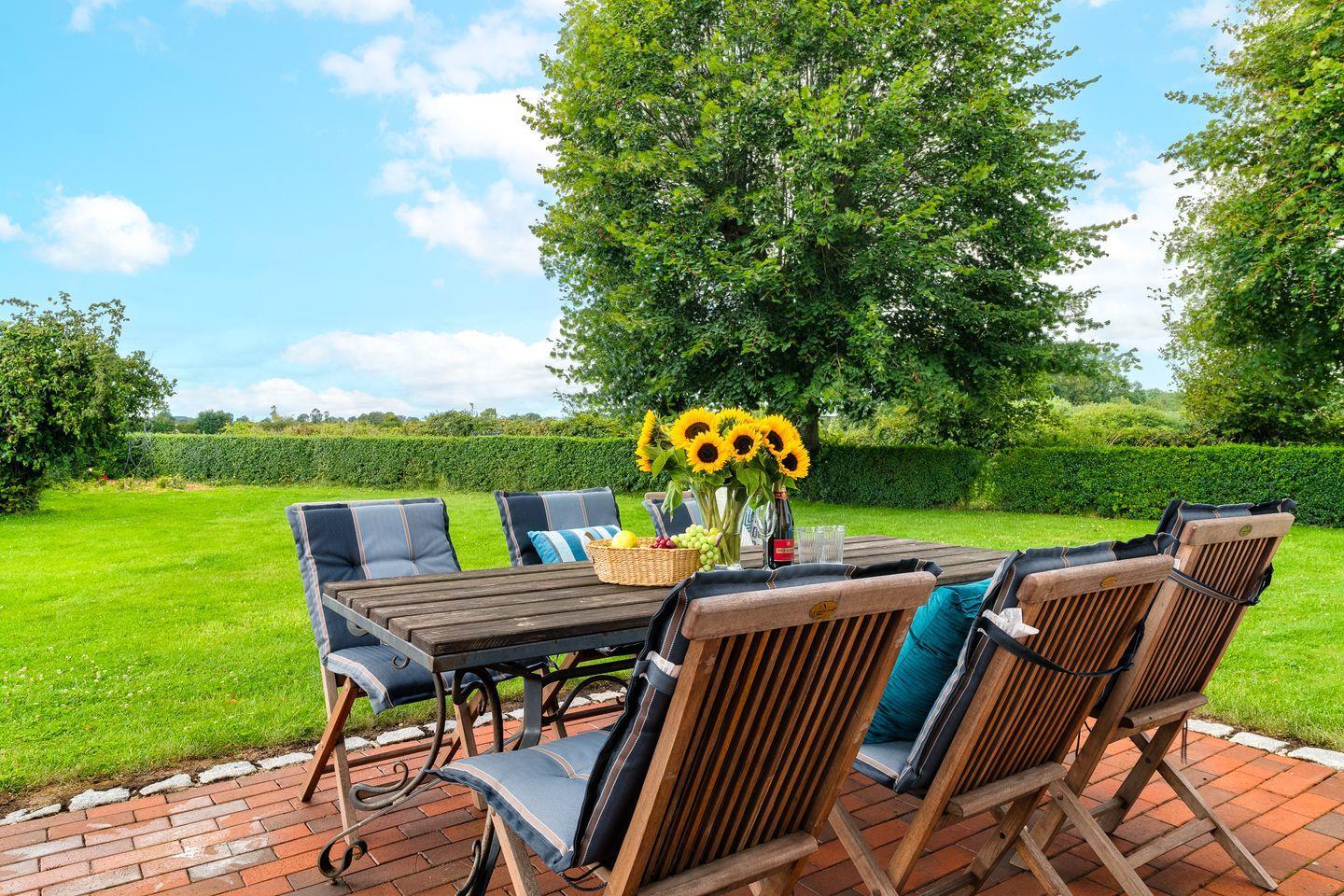 Ein weiteres Highlight bildet die große Terrasse, die direkt an das Wohnzimmer anschließt und mit Gartenmöbeln ausgestattet ist.