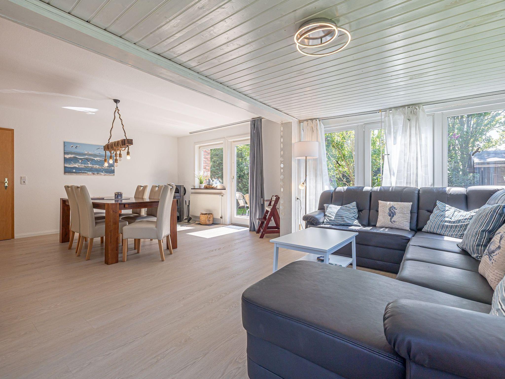 Das ebenerdige Ferienhaus Nordlicht bietet bis zu 4 Personen (plus 1 Kleinkind bis 2 Jahren) viel Raum und Komfort für eine erholsame Auszeit am Meer. Mitgebrachte Fahrräder können sicher in einem abschließbaren Gartenschuppen untergebracht werden. Die beiden Terrassen in Süd- und Westausrichtung mit Sitzmöbeln, Sonnenschirm und Sonnenliegen laden zum Entspannen und Grillen ein.