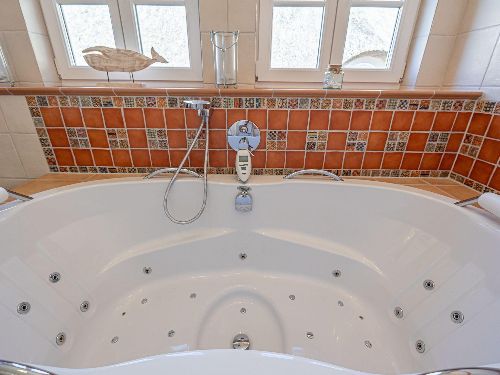 • Großes Badezimmer mit Whirlwanne, Wand-TV und extra großer Erlebnisdusche; Handtücher, Bademäntel inklusive