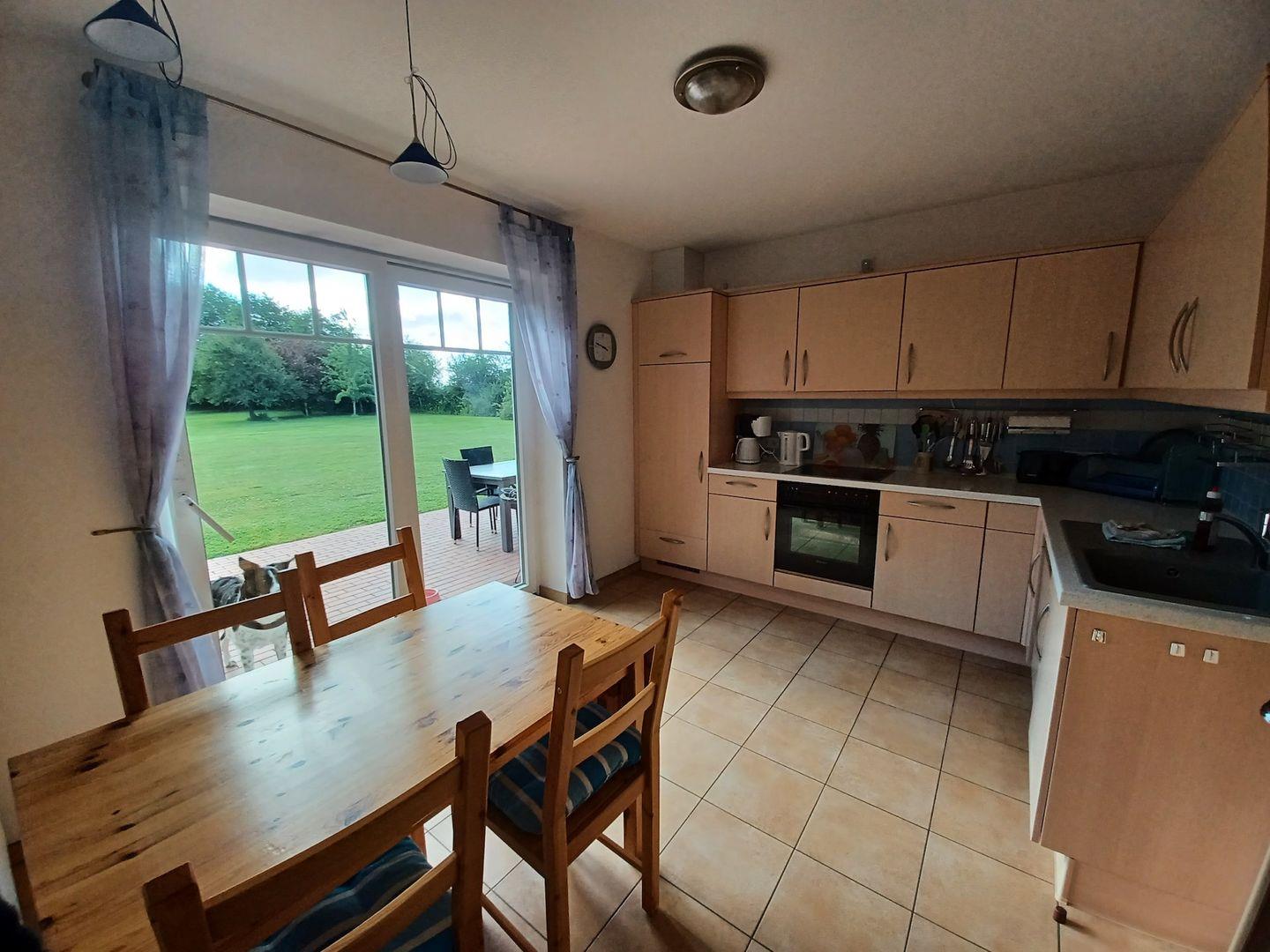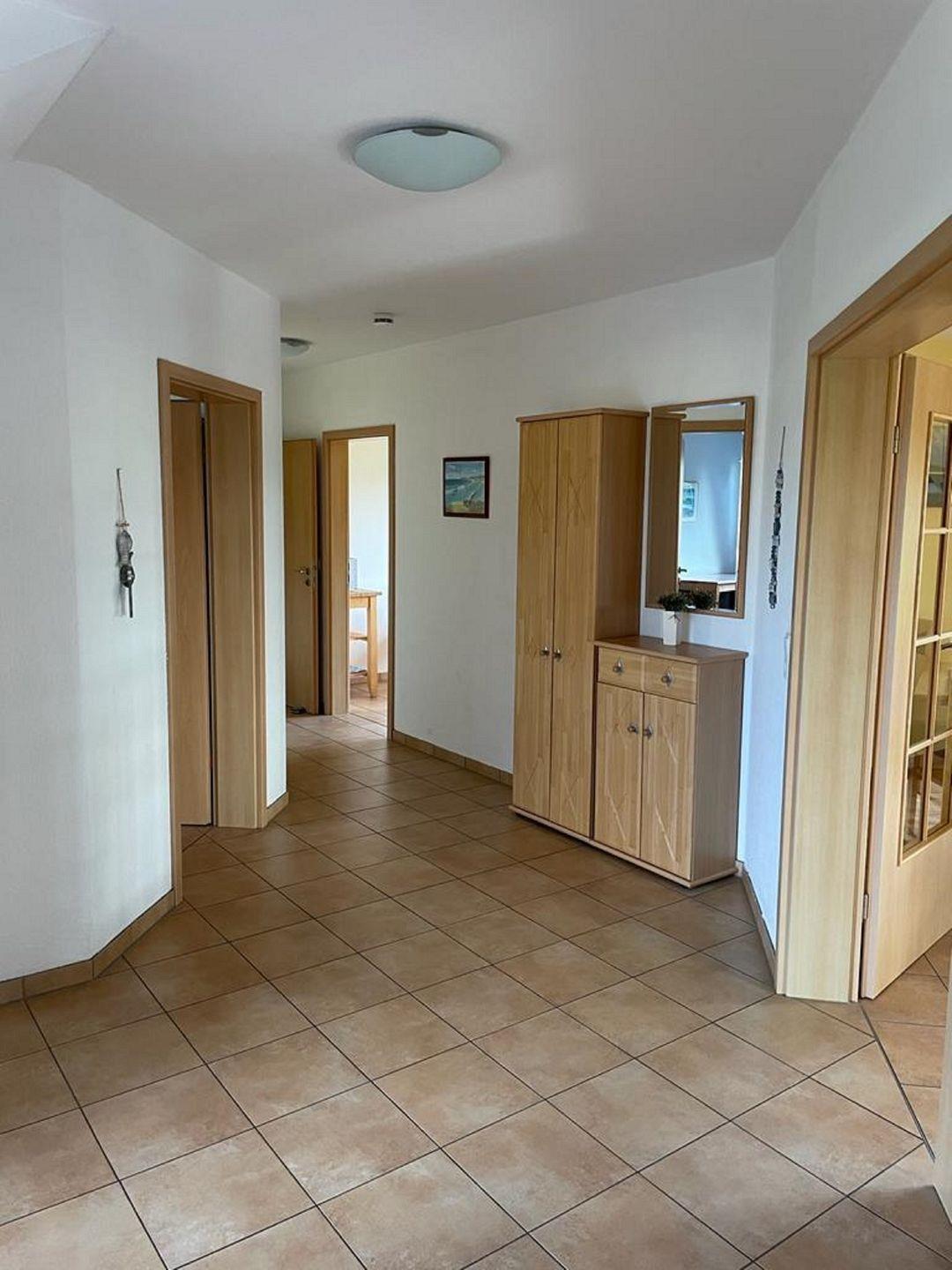 Diese Ferienwohnung im EG bietet auf 90m² Platz für bis zu 5 Personen. Sie bietet Ihnen einen großzügigen Wohnbereich mit angrenzender, vollausgestatteter Küche & ein Badezimmer, das über eine Dusche verfügt. Zwei, der drei Schlafzimmer verfügen über ein gemütliches Doppelbett & das dritte über 2 Einzelbetten. Das Schlafsofa bietet weitere Schlafmöglichkeiten. Auf der Sonnenterrasse mit Holzkohlegrill und einem Gemeinschaftsgarten können Sie Ihren Abend entspannt ausklingen lassen.