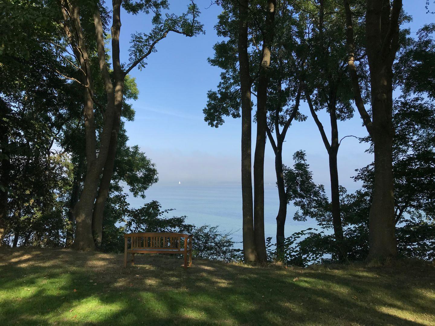 Der großzügige Garten mit Apfelbäumen, lädt zum Verweilen und Entspannen ein. Sonnenliegen mit Blick auf die Ostsee bieten perfekte Plätze zum Lesen, Sonnen oder einfach den Wellen zu lauschen. Ein gemütlicher Grillbereich sorgt für entspannte Abende im Freien – ideal für sommerliche Mahlzeiten mit Familie oder Freunden. Dies ist ein privater Rückzugsort, der Natur, Ruhe und Meerblick harmonisch verbindet. Der Garten ist allerdings nicht eingezäunt.