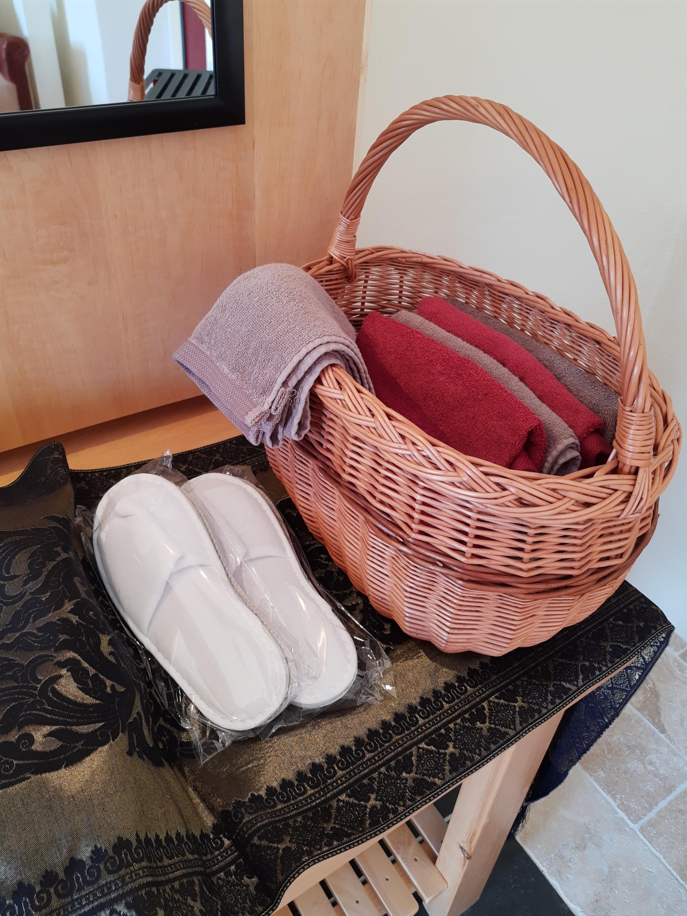 Zum stilvoll eingerichteten Badezimmer, dass Sie gemeinsam mit dem "Giordano Bruno" und der "Camera della Principessa Nera" benutzen, erhalten Sie einen Korb mit allem nötigen, wie Handtücher, Seife, Hausschuhe und Bademantel. Alles wird selbstverständlich bei Bedarf täglich ausgetauscht. Im "Gerolamo Cardano" haben Sie aber noch zusätzlich ein eigenes Waschbecken auf dem Zimmer verfügbar.