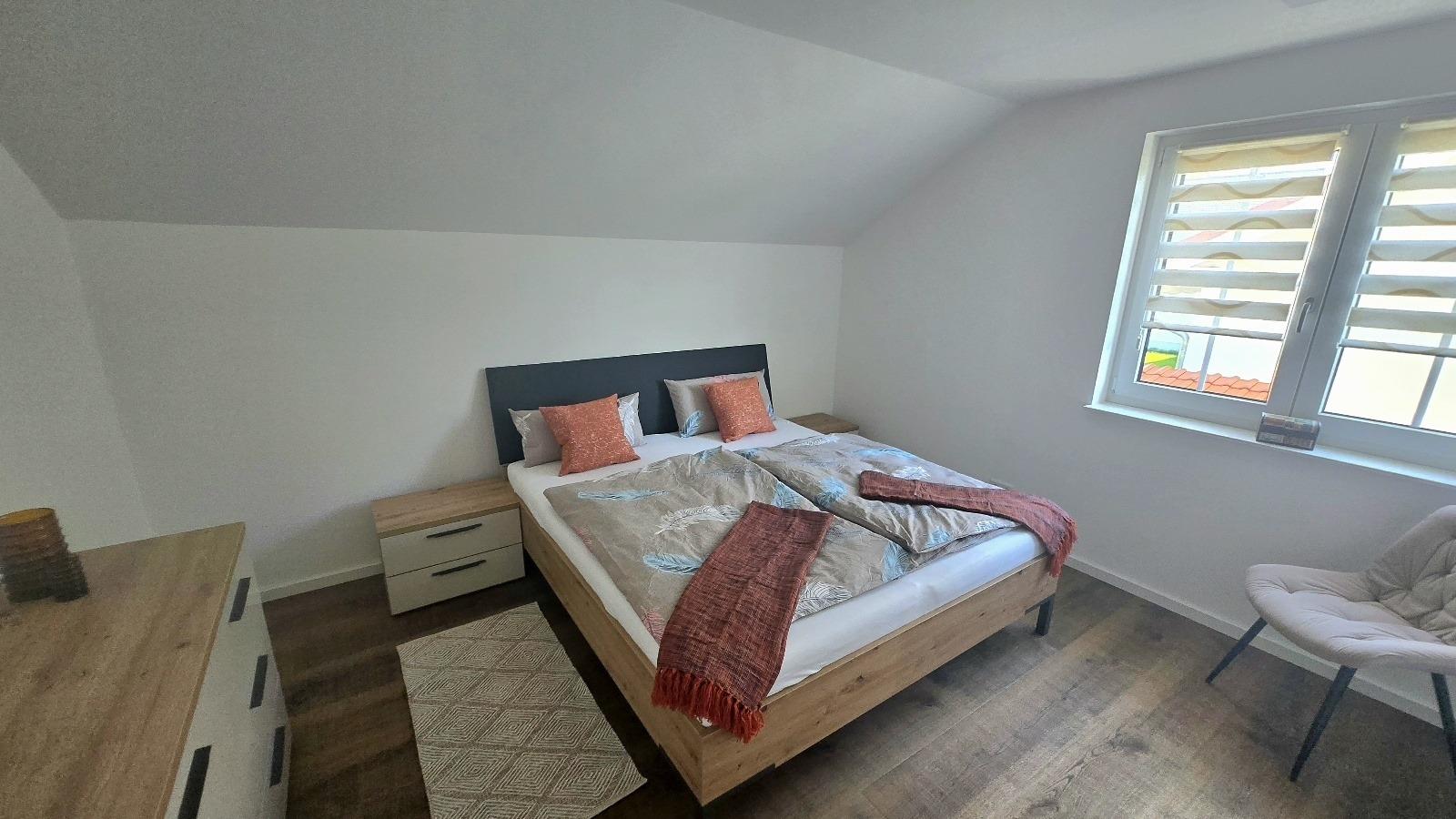 Voll ausgestattete Küche, komfortables Schlafzimmer, helles Wohn-/Esszimmer