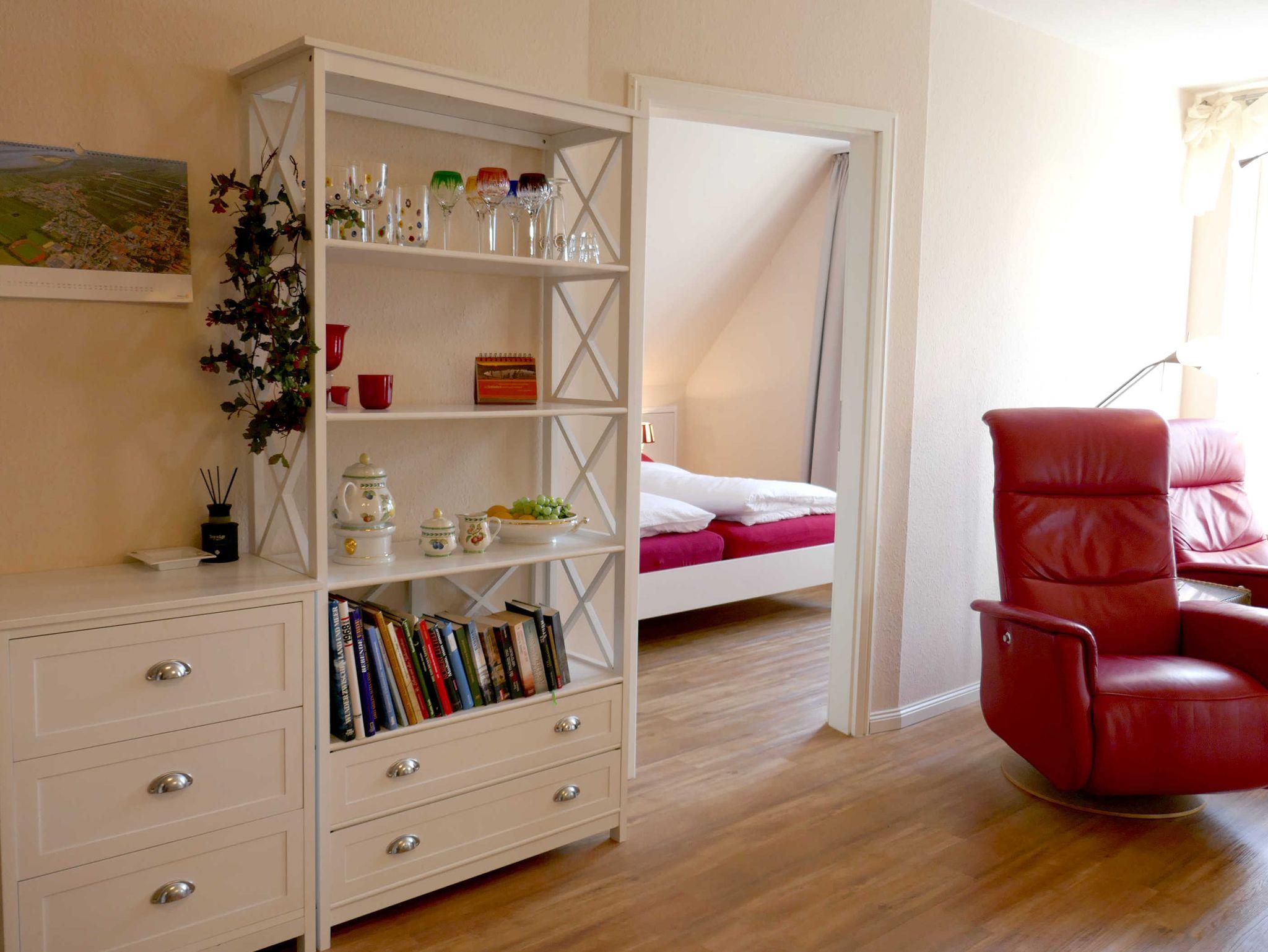 Komfortable,hochwertig eingerichtete 4 Sterne Wohnung vom Deutschen Tourismusverband ausgezeichnet, Nichtraucherwohnung. Wohnzimmer mit integrierter ,vollausgestatteter Küche mit exclusiven Geschirr. Fußböden mit Plankenbelag,