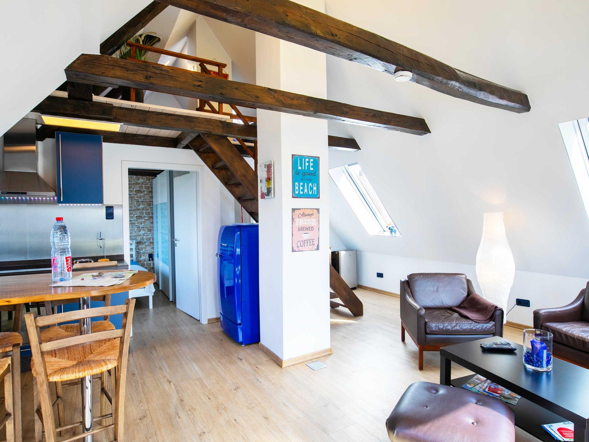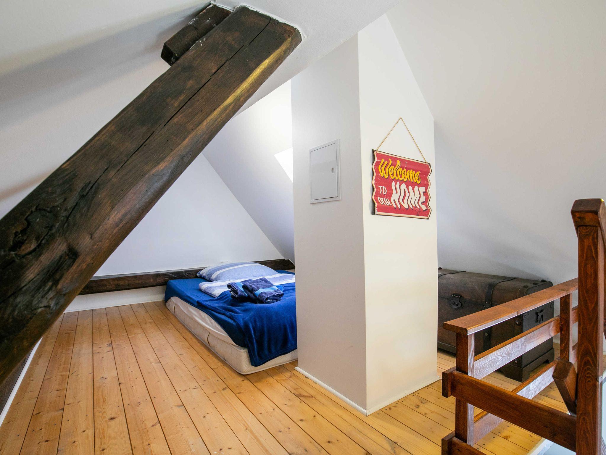 Dieses Apartment verfügt über ein Schlafzimmer mit Doppel,.- oder Einzelbett und einem Schlafloft mit einem Bett 140 cm x 200 cm. Ausserdem bieten wir einen großer Garten, Grillplatz, vollausgestattete Küche, W-Lan, großer Flachbildfernseher
