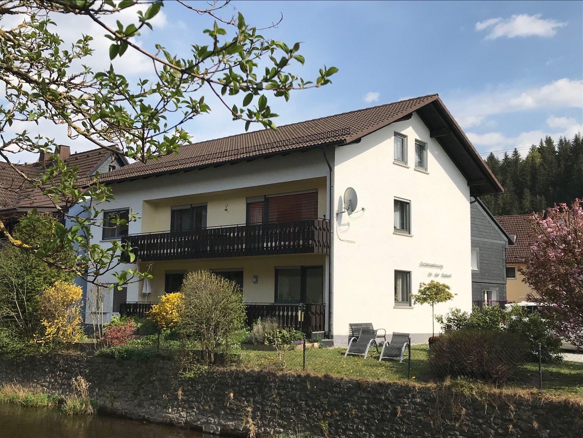 Ferienwohnung 2 An der Rodach, großzügig, helle Wohnung im 1. Stock mit tollem Balkon und herrlichem Blick auf die Rodach für 4-5 Personen. Neu renoviert und ausgestattet ohne Teppich. Nichtraucherwohnung ganzjährig buchbar. 1 Schlafzimmer mit Doppelbett, 1 Schlafzimmer mit Doppelbett, 1 Schlafzimmer mit Einzelbett und Sessel. Neues Bad mit Dusche und Wanne, Föhn, Waschmaschine. Küche voll ausgestattet mit Geschirrspüler, Toaster, Wasserkocher. Gemütliches Wohnzimmer mit Sofa und getrenntem Essplatz, WLAN -Zugang, Sat-TV, komplette Wäscheausstattung. Bücher & Spiele sowie Kinderbett/Zustellbett auf Anfrage möglich. Platz zum Wohlfühlen auf 97 qm. Garten zum Grillen und Entspannen.