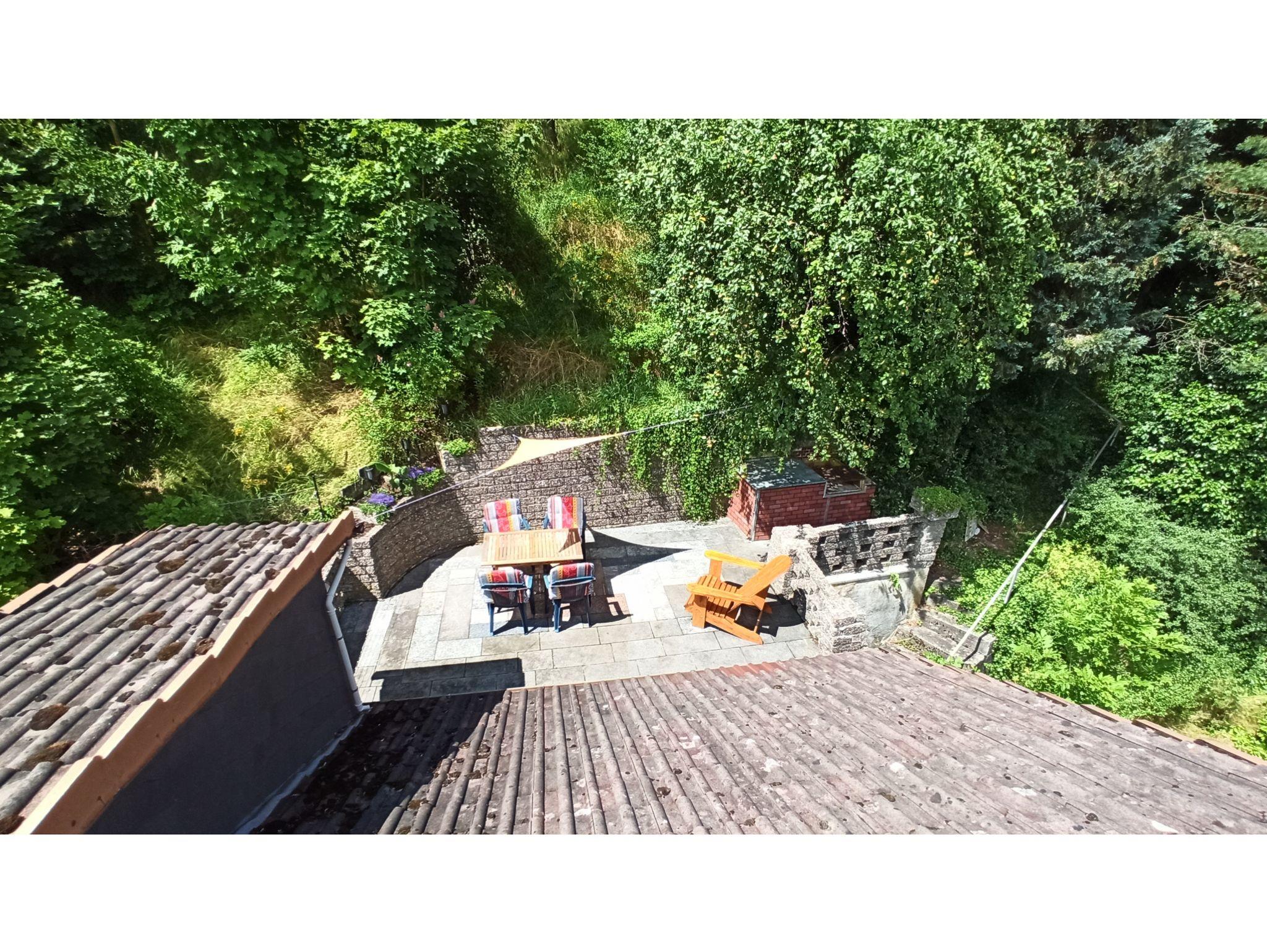 Das Haus schmiegt sich an den Mühlberg und bietet auf der Rückseite eine versteckte und Sonnige Dachterrasse mit feststehendem Grill.