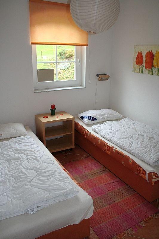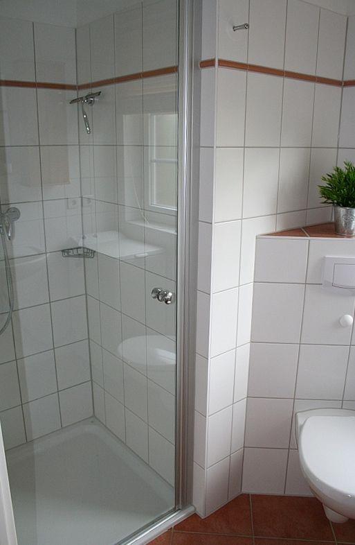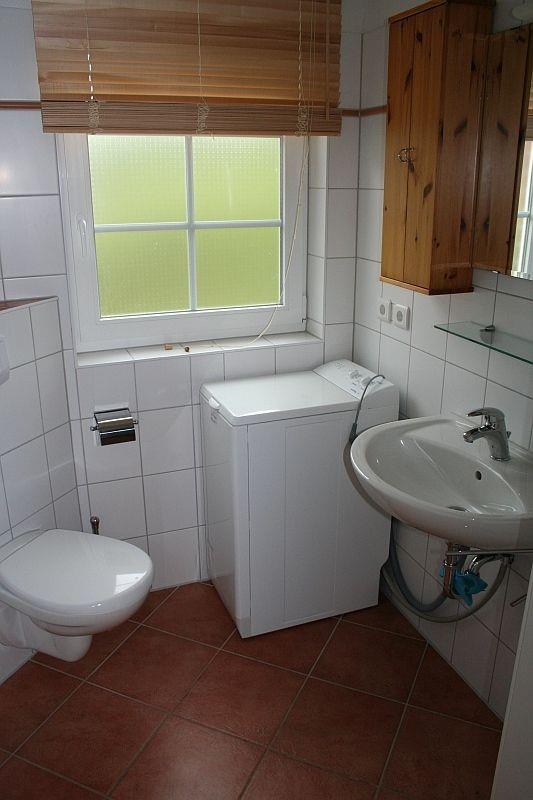 Es gibt zwei Bäder mit je Dusche und WC. Ein höhenverstellbarer Duschhocker steht ebenfalls zur Verfügung. Im unteren Bad befindet sich eine Waschmaschine. Das Haus ist für Rollstuhlfahrer geeignet: Es gibt zur Haustür keine Stufe. Bad und Schlafzimmer im Erdgeschoss haben entsprechend breite Türen. Auch die Terrasse hat eine rollstuhlgeeignete Zuwegung. Das Ruderboot steht von April bis Oktober zur Verfügung (ohne Gewähr und auf eigene Gefahr).