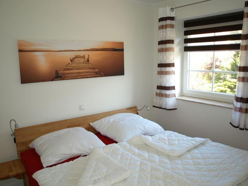 Das Schlafzimmer im Erdgeschoss hat ein Doppelbett (1,80 x 2,00 m) sowie einen ausreichend großen Kleiderschrank.