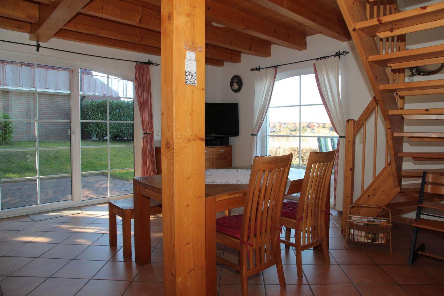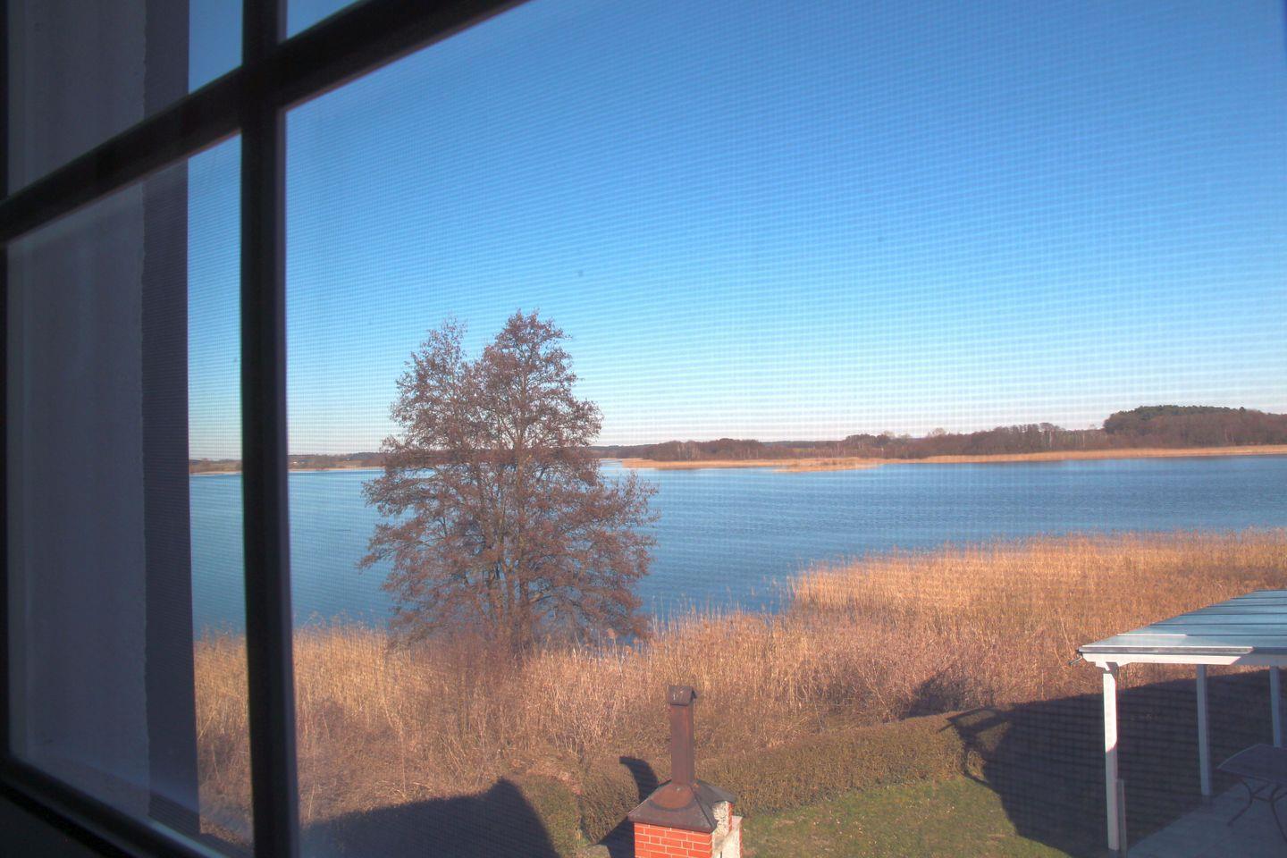 Das Ferienhaus vereint modernen Komfort mit einem gemütlichen Ambiente. Sie erwartet eine helle und einladende Atmosphäre, die durch die hochwertigen Materialien und die durchdachte Einrichtung entsteht. Das Wohnzimmer ist mit einer bequemen Sofaecke ausgestattet, wo Sie nach einem erlebnisreichen Tag entspannen und die Zeit mit Ihren Liebsten genießen können. Ein TV mit Hifi-Anlage sorgt für Abwechslung, während große Fenster einen traumhaften Blick auf den See bieten und viel Licht in den Raum lassen.