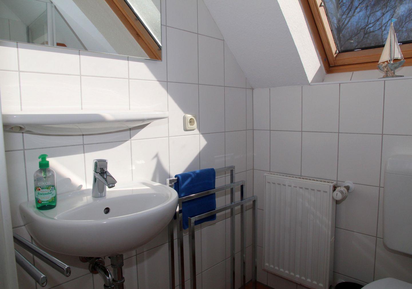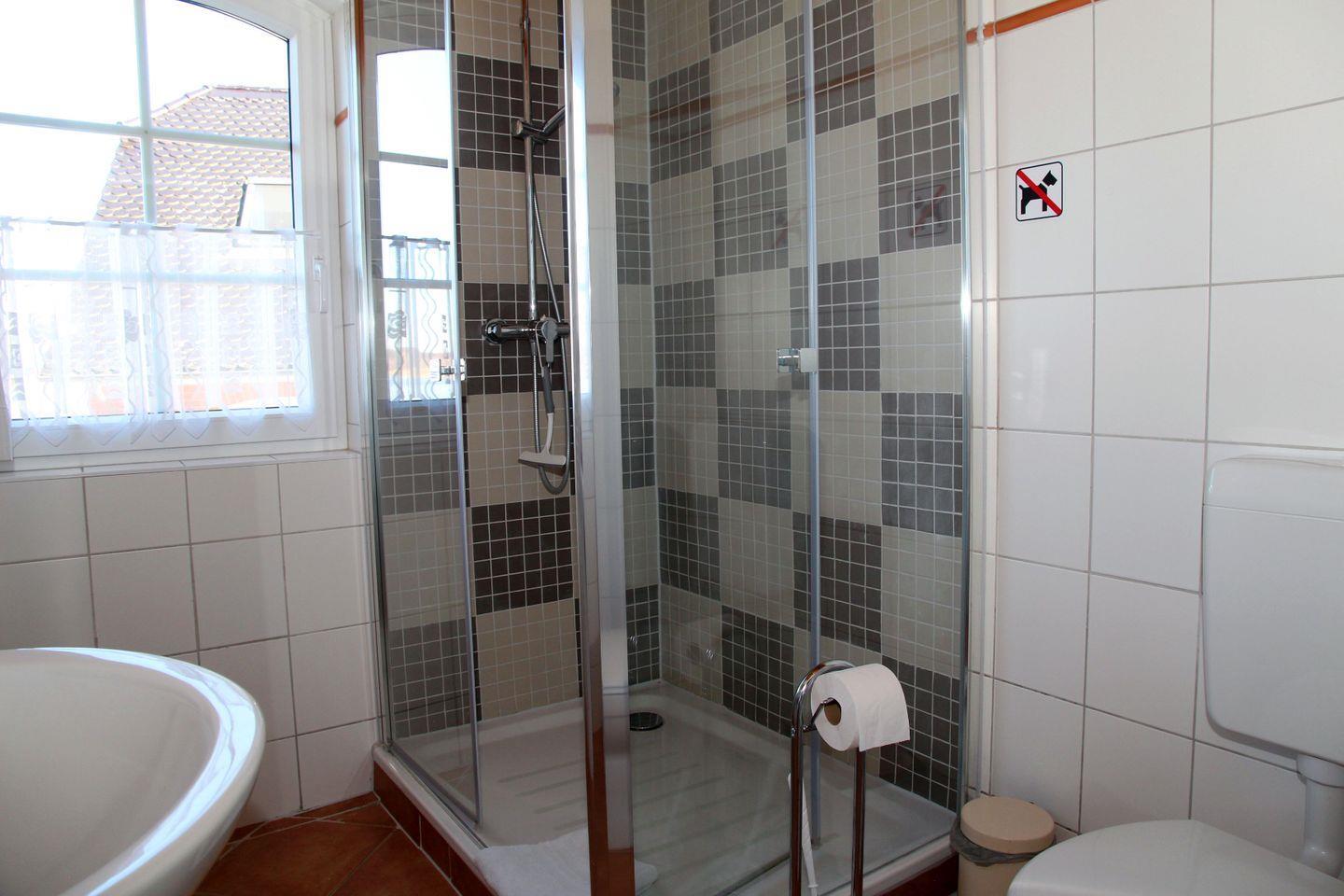 Zwei Badezimmer mit Dusche, aufgeteilt auf Erdgeschoss und Obergeschoss, bieten genügend Platz, um sich frisch zu machen und zu entspannen.