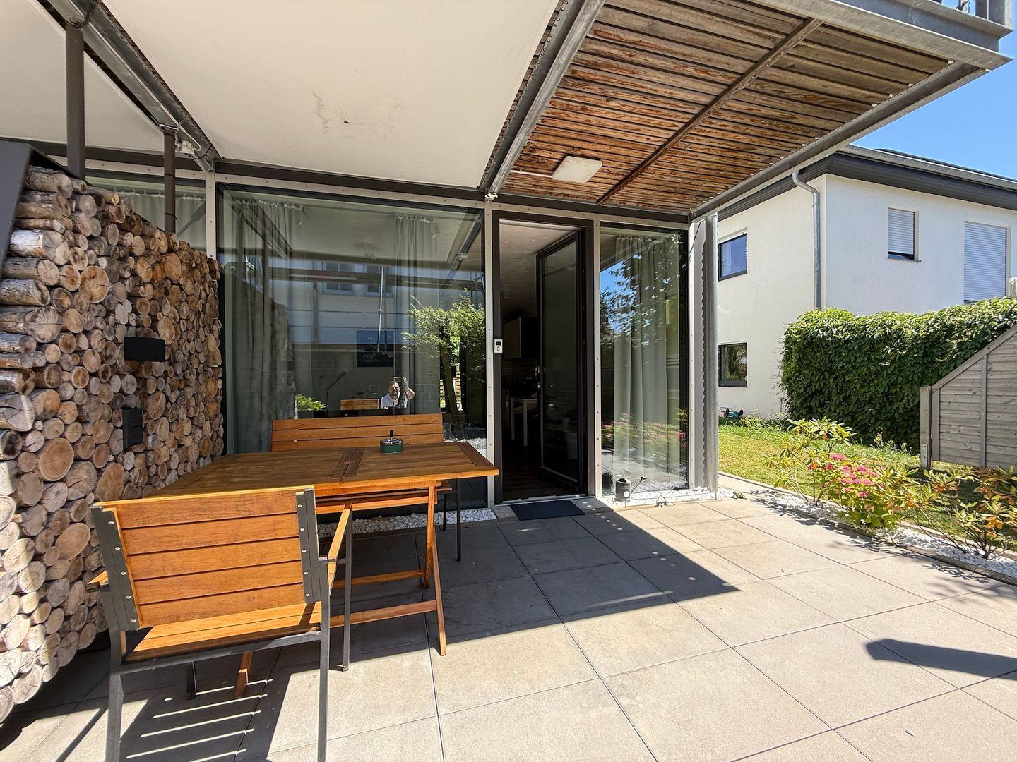 Modernes See und Mehr Apartment 3 mit überdachter Terrasse und Gartenblick
