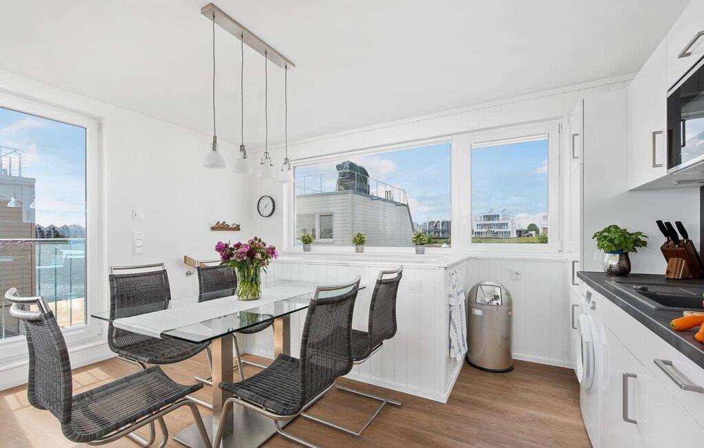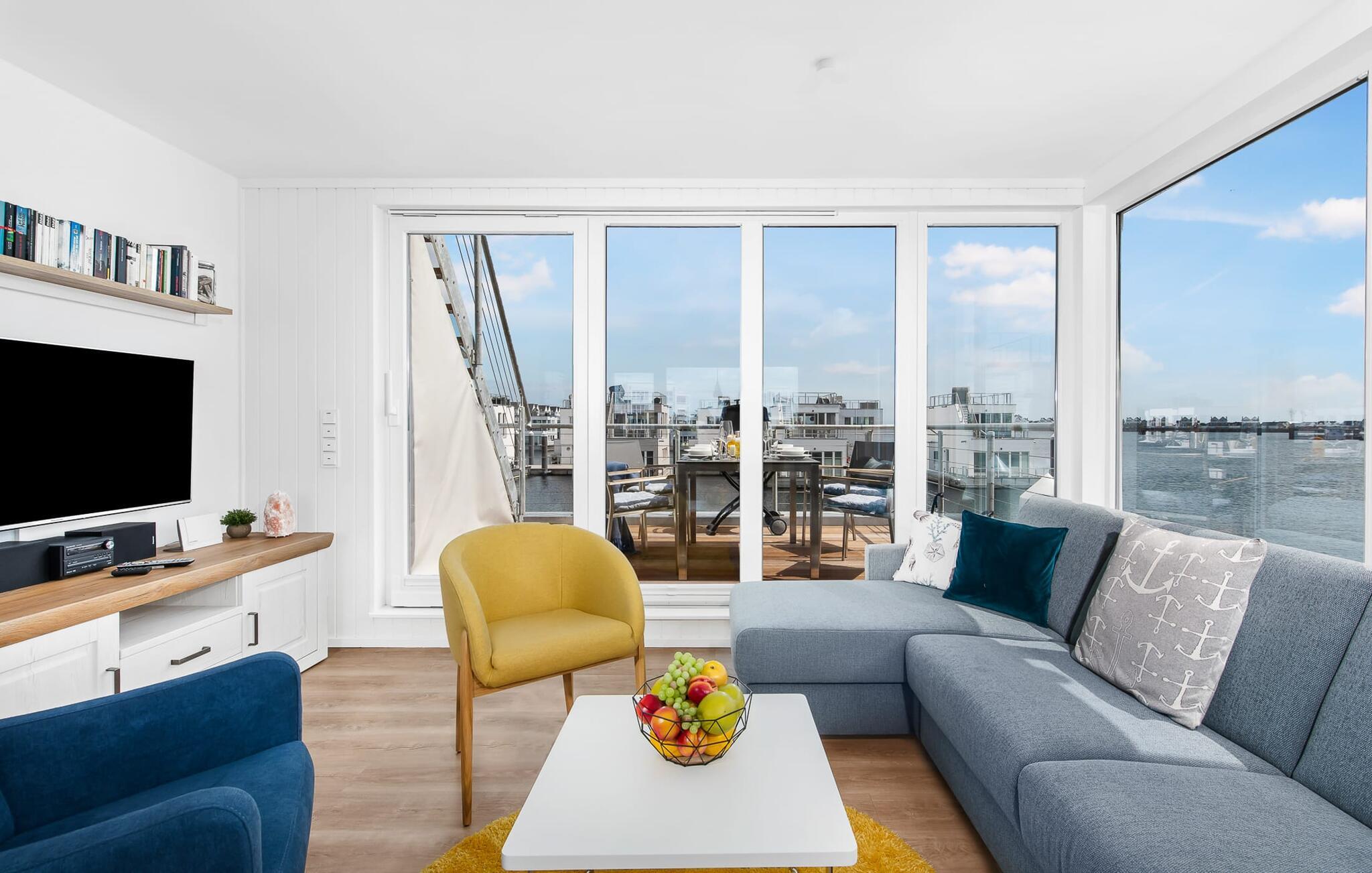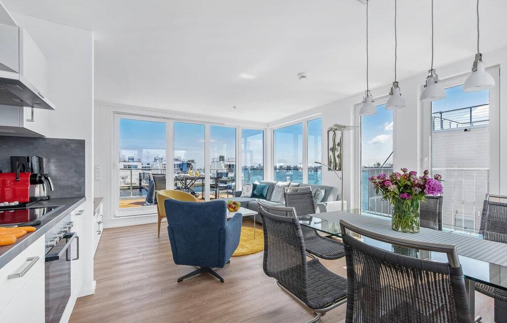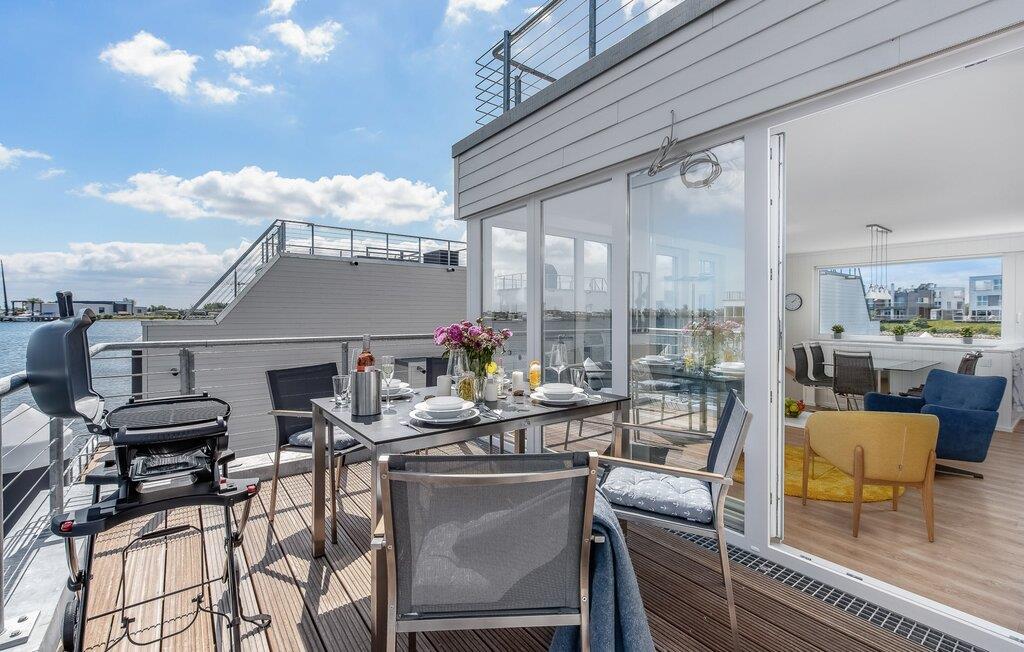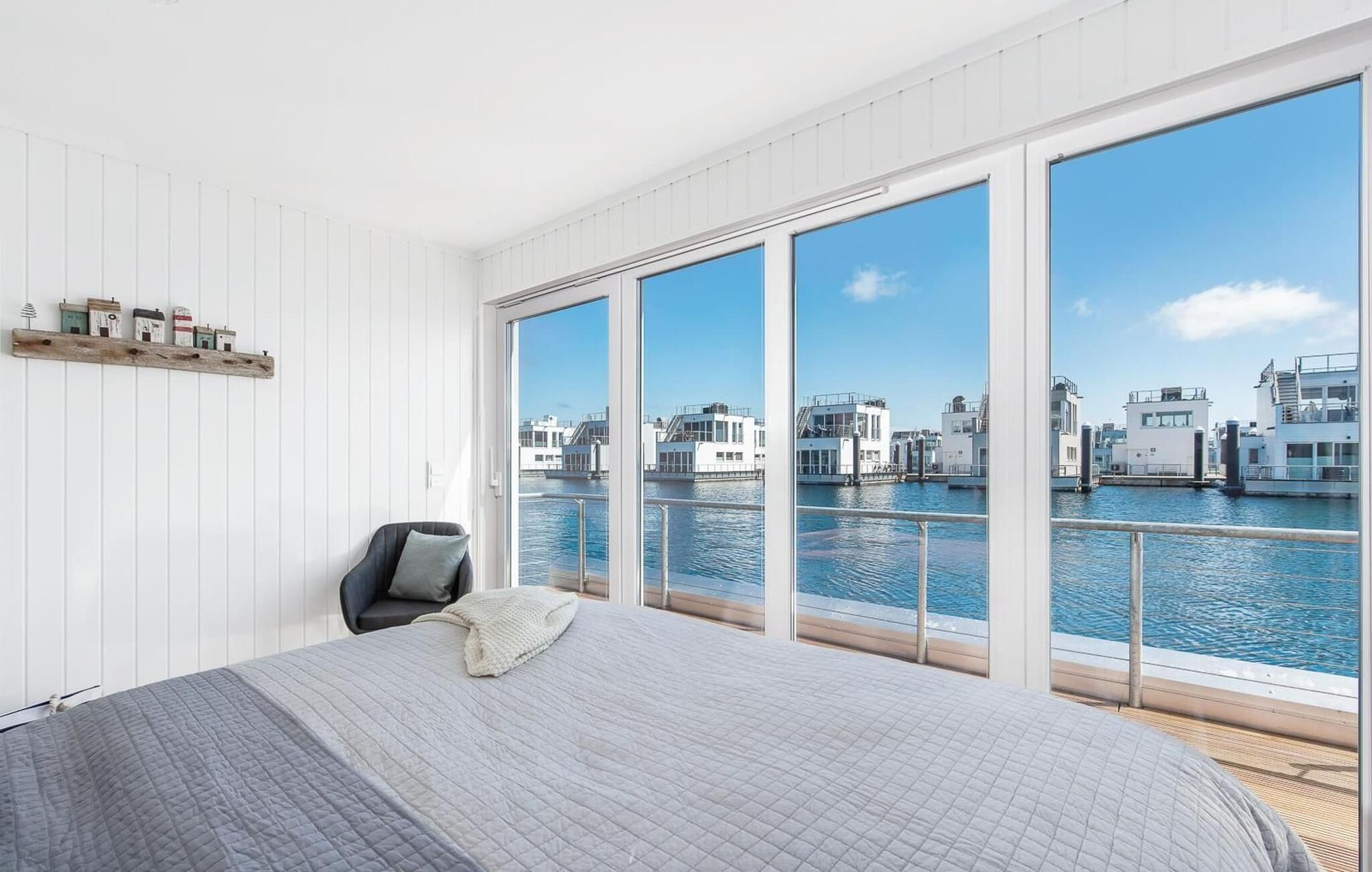 Beliggende på anløbsbroen på et smalt næs, med Østersøen på den ene side og østersøfjorden Slien på den anden side, er det flydende hus Stockholm forankret i ferieområdet Olpenitz med en fantastisk udsigt over vandet hele vejen rundt. Hyggelig atmosfære, indretning af høj kvalitet og moderne indretning skaber en helt særlig hygge udover feriekomfort på højeste niveau. Hvis I elsker udsigten over vandet og Østersøen, har I fundet den perfekte ferielejlighed i den flydende husbåd Stockholm.