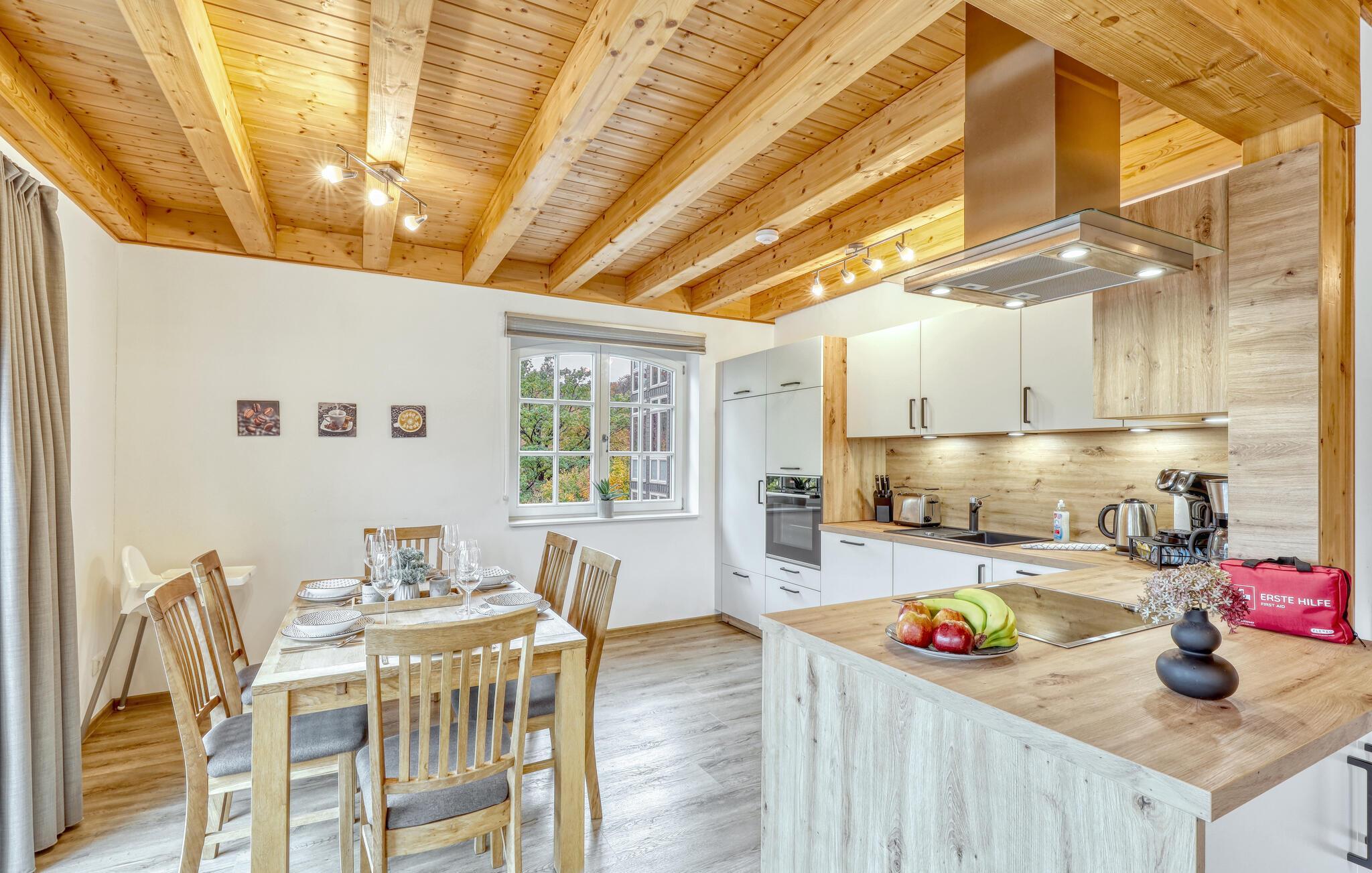 Forkæl jer selv med en pause i denne moderne luksusferielejlighed i stueetagen, der kombinerer elegance, ro og en varm og behagelig atmosfære. Træd indenfor og mærk straks den hyggelige atmosfære i de åbne opholdsrum. Slap af på den store sofa foran gulv-til-loft-vinduerne, hvor sollyset bader rummet i varmt lys. Tilbered jeres yndlingsretter i det moderne køkken med apparater af høj kvalitet og nyd måltider sammen ved spisebordet med udsigt over de grønne omgivelser. Benyt jer af den fælles sauna – ideel til at lade batterierne op efter en aktiv dag.