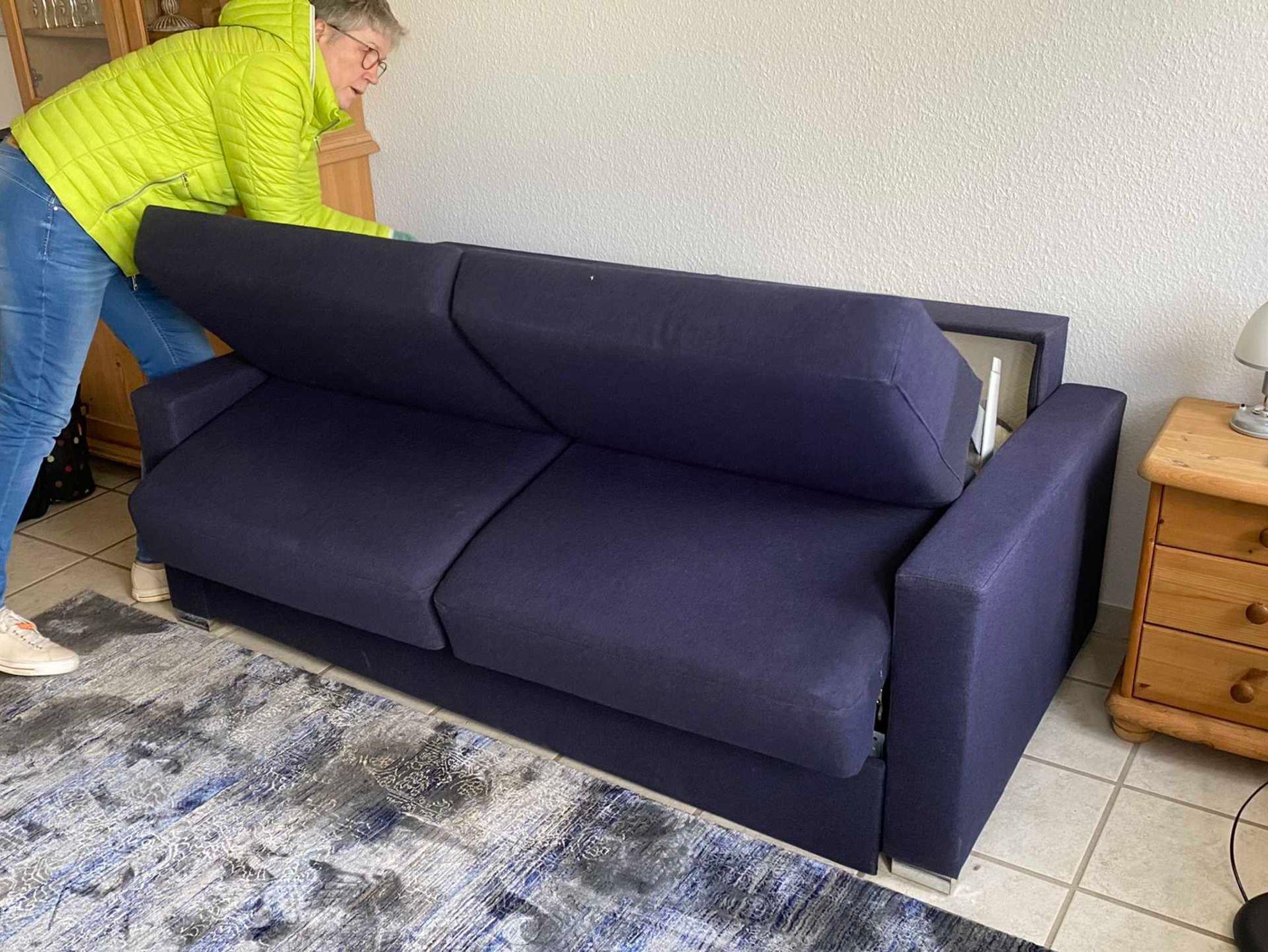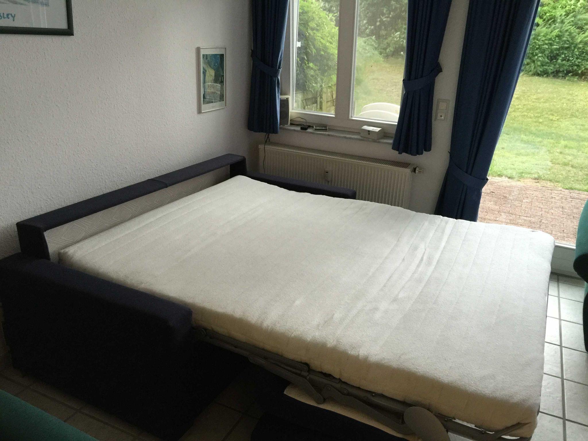 Gemütlicher Leder-Relaxsessel und ausziehbare Schlafcouch.
