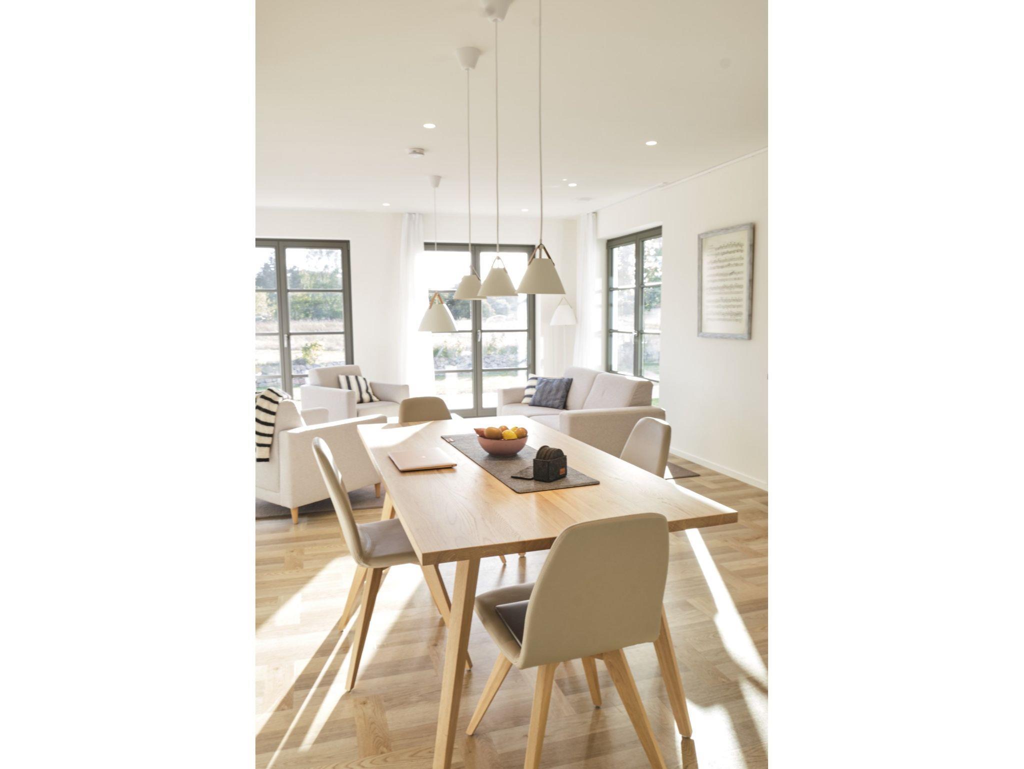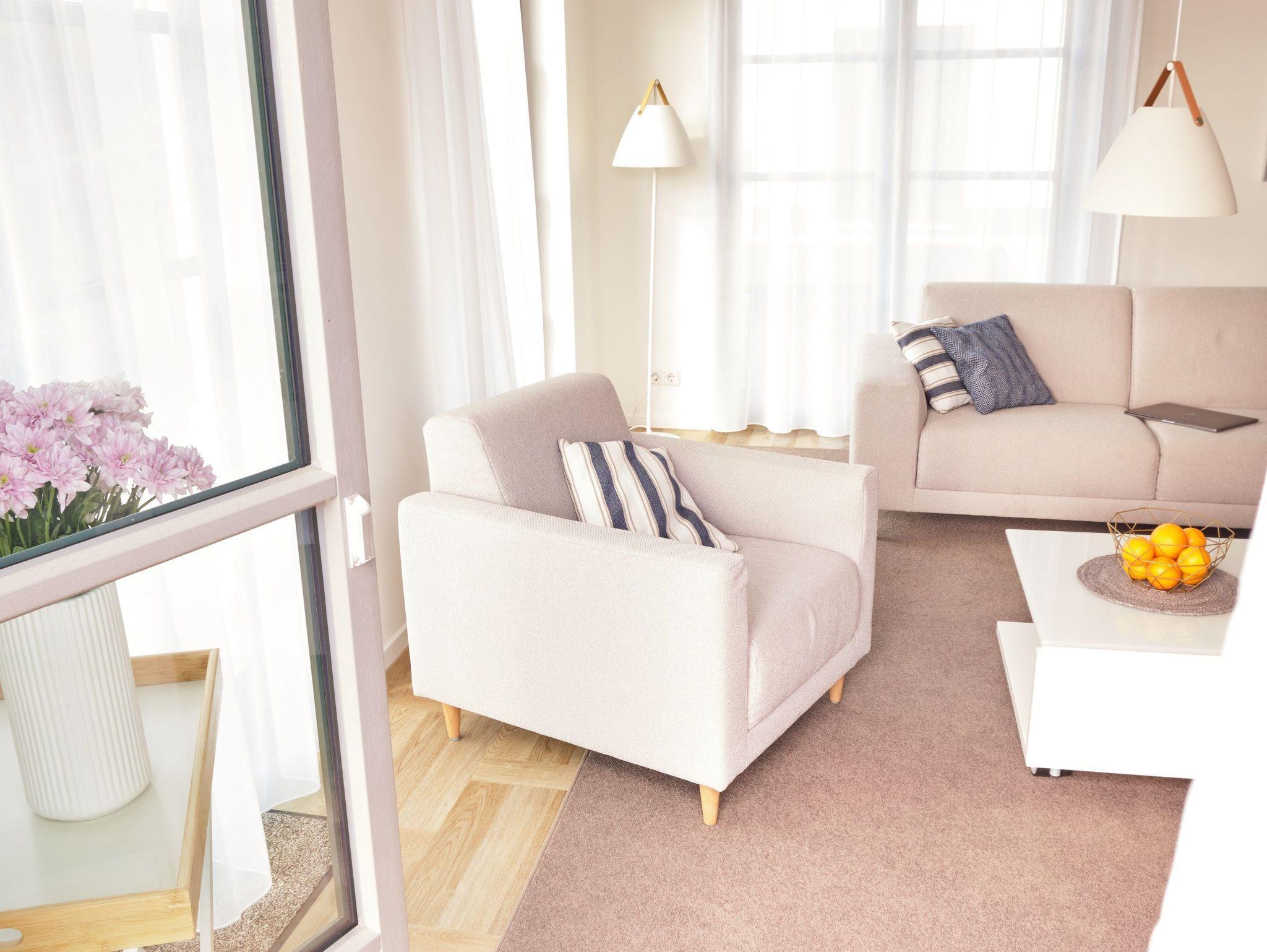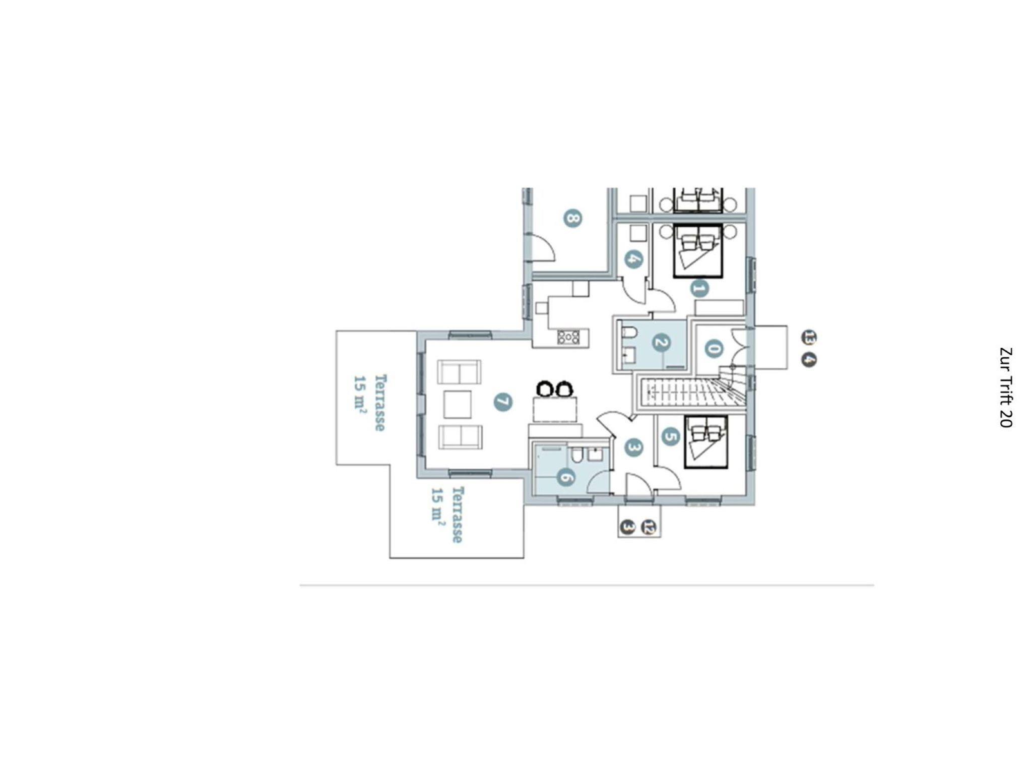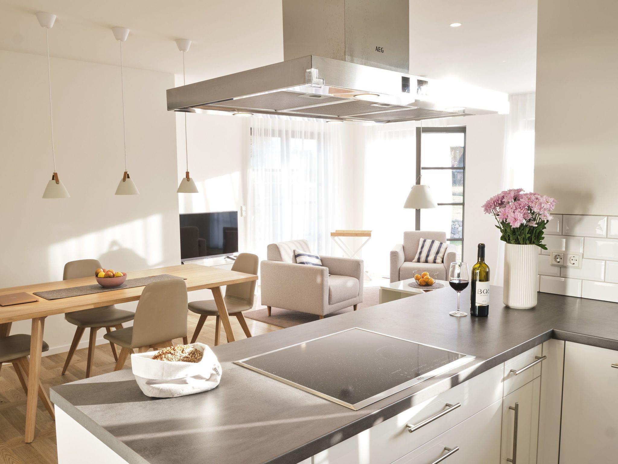 Den ca. 90 m² großen Innenbereich prägt ein schickes skandinavisches Design. Vom Flur abgehend befindet sich rechterhand das Schlafzimmer 1 und linkerhand ein geräumiges Badezimmer mit Badewanne, so dass hier auch im Winter herrlich entspannt werden kann. In den weitläufigen Wohnbereich gelangt man ebenfalls direkt vom Flur. Ess-, Wohnbereich und offene Küche gehen ineinander über, und bieten nicht zuletzt in Kombination mit der bodentief verglasten Terrassenfront in Erkerform auch von innen einen weiten Blick in die offene Landschaft und prägen so ein außergewöhnliches, gemütliches Raumgefühl. Eine helle und moderne Ausstattung, mit u.a. Rolf Benz Sitzmöbeln, runden das Wohlfühl-Ambiente ab. Das zweite Bad schließt direkt an das Hauptschlafzimmer (Schlafzimmer 2) an und ist mit einer bodentiefen Dusche mit Glasabtrennung bestückt. Beide Schlafzimmer verfügen über ein Doppelbett. Bei allen Betten handelt es sich um Boxspringbetten. Im Wohnzimmer, sowie im Schlafzimmer 1 befindet sich jeweils ein Flachbildschirm. Es gibt ein Babybeistellbett und ein Kinderbett bei Bedarf.