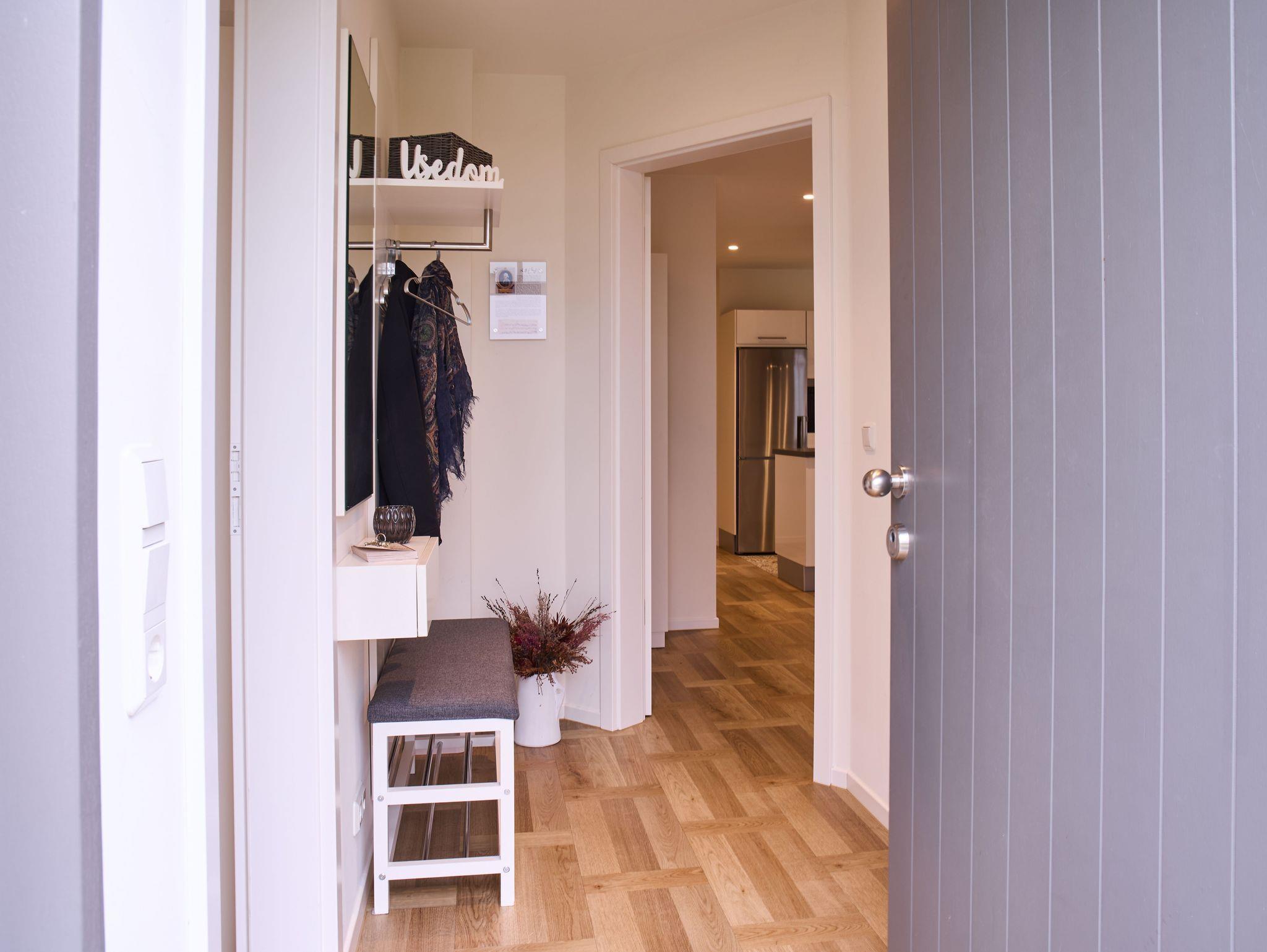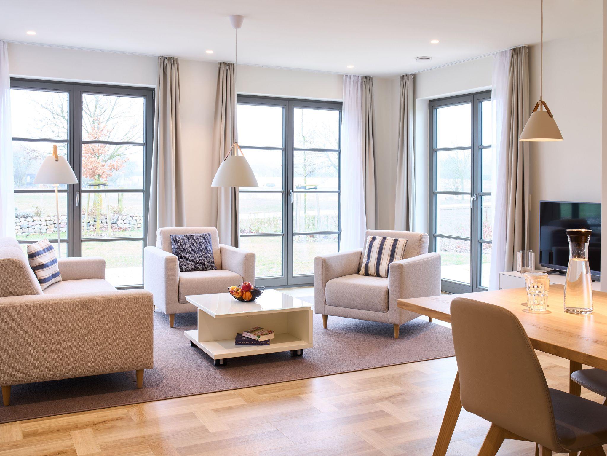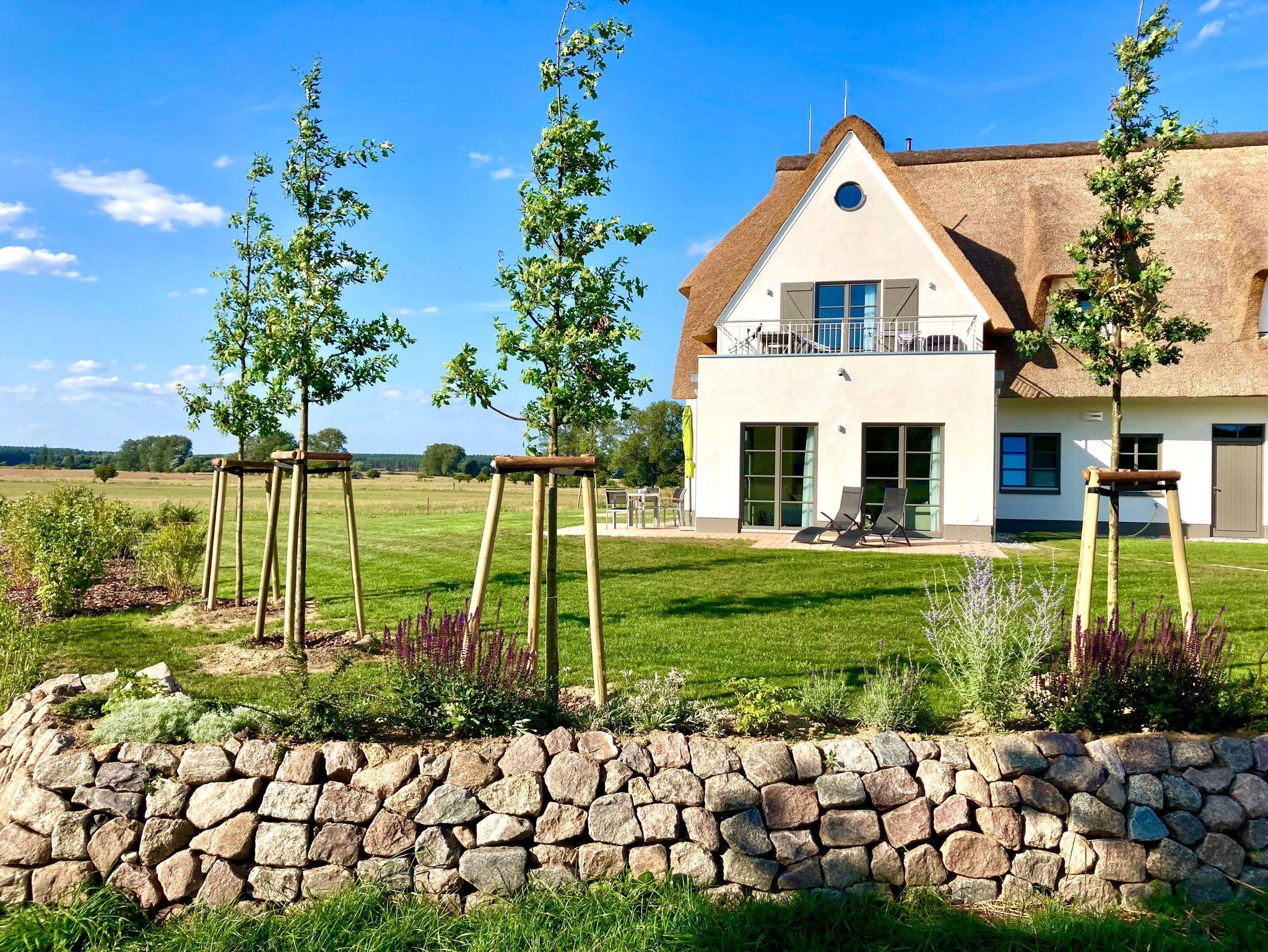 Die Reet gedeckten Häuser wurden in nachhaltiger Holzbauweise errichtet und die Einrichtung ist durch helle sowie freundliche Farben geprägt. Der Blick auf die Haffküste und die umliegende Natur machen Ihren Urlaub einzigartig.