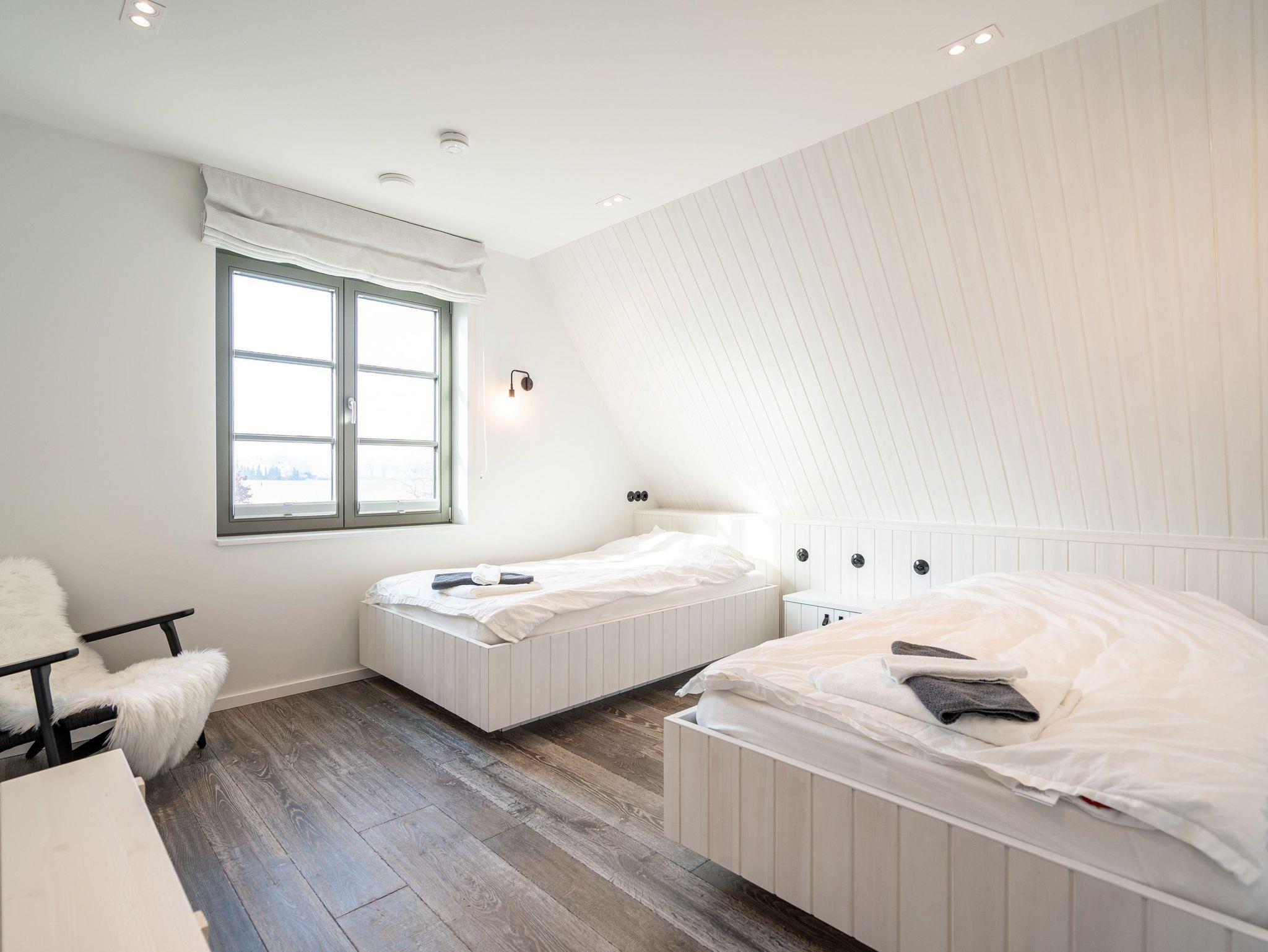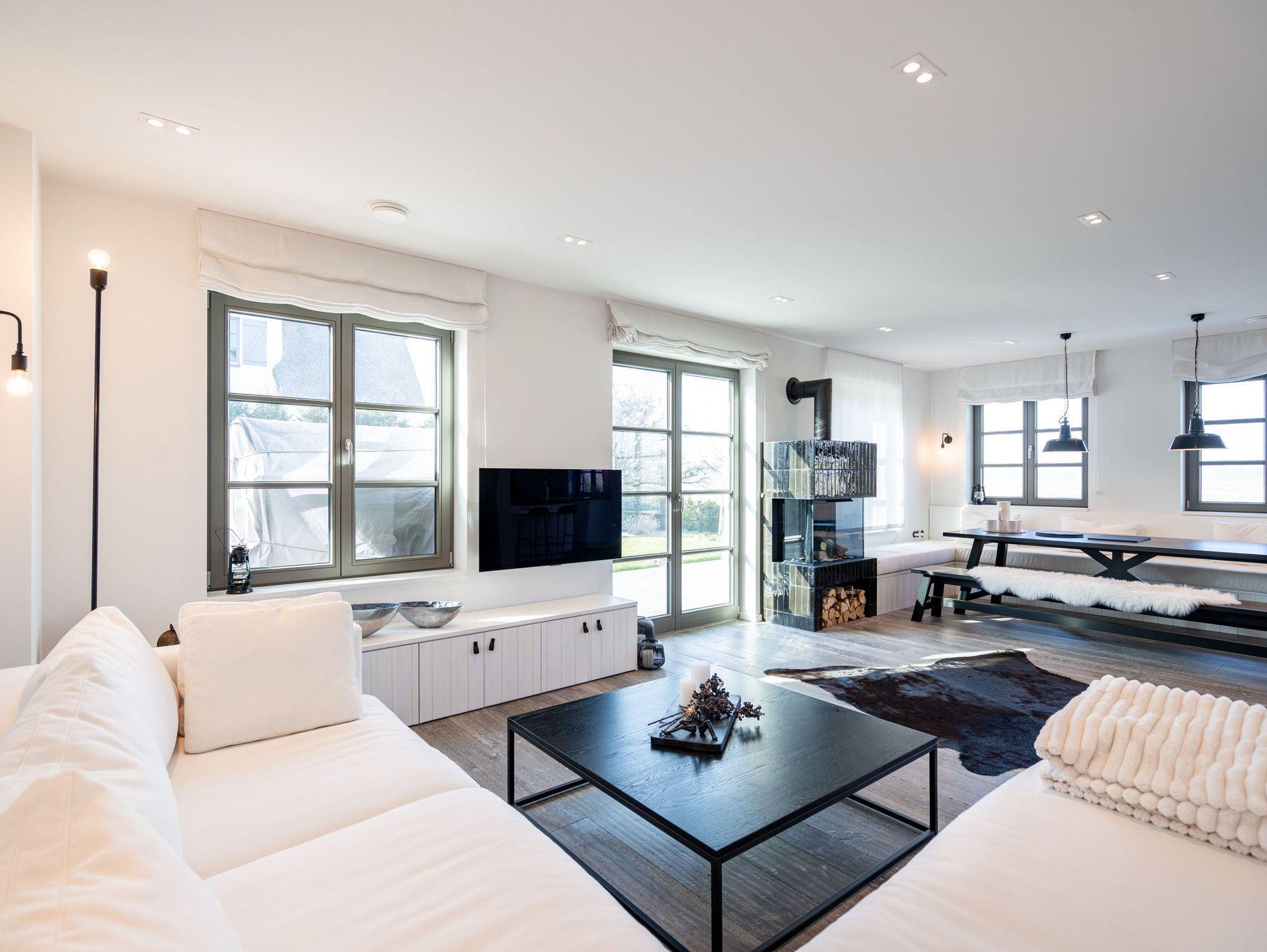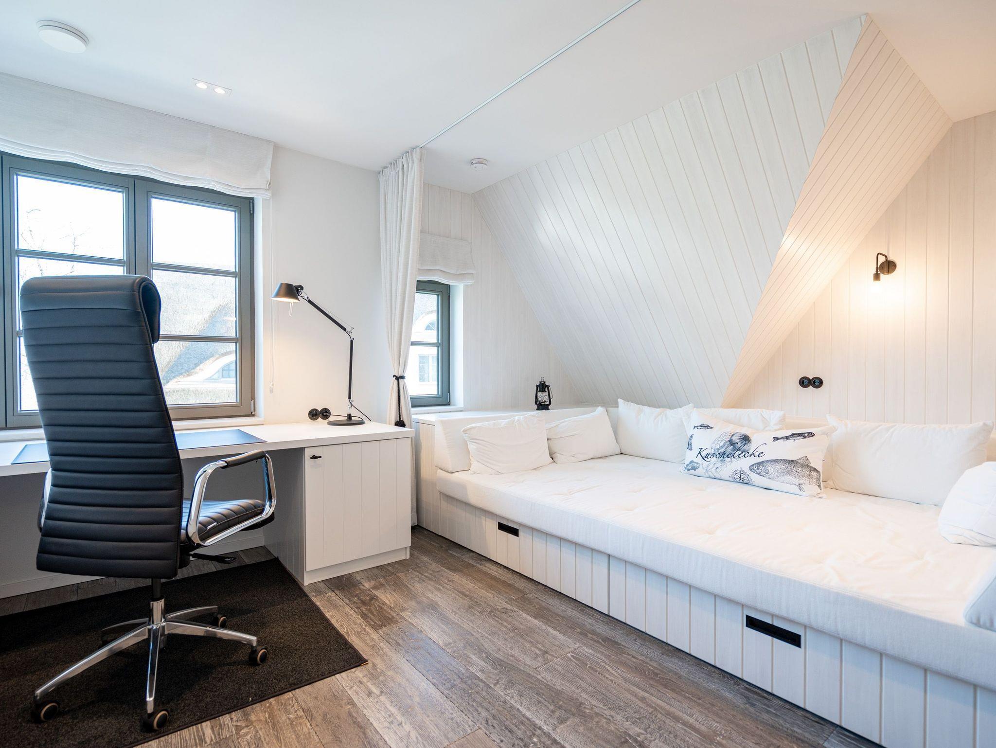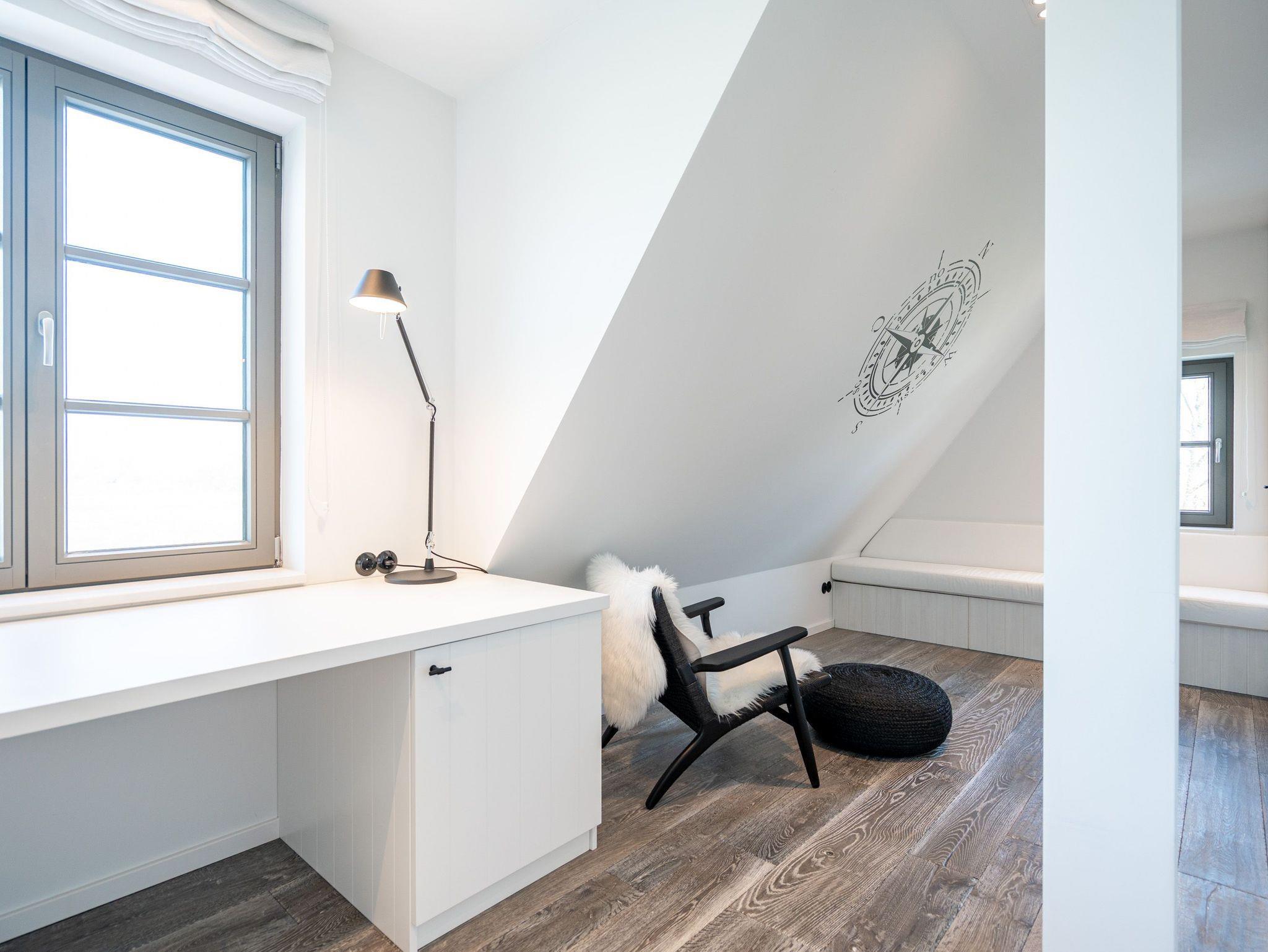 Willkommen im exklusiven Haus N° 2 ? Ihrem luxuriösen Rückzugsort auf drei Etagen! Mit großzügigen 170 m² Wohnfläche bietet dieses stilvolle Feriendomizil Platz für bis zu vier Personen und begeistert mit einer hochwertigen Ausstattung, modernen Annehmlichkeiten und einer herrlich ruhigen Lage mit Blick ins Grüne. Im Erdgeschoss erwartet Sie ein offener Wohnbereich, der mit einer luxuriösen Küche, einem stilvollen Essplatz sowie einer gemütlichen Sitzgruppe mit Flat-TV und einem per Fernbedienung steuerbaren Elektrokamin zum Wohlfühlen einlädt. Das angrenzende Bad mit Dusche und WC sowie der Hauswirtschaftsraum mit Waschmaschine und Trockner sorgen für zusätzlichen Komfort. Das erste Obergeschoss bietet zwei helle Arbeitszimmer ? ideal für alle, die auch im Urlaub nicht auf einen ruhigen Arbeitsplatz verzichten möchten. Zudem befindet sich hier ein gemütliches Schlafzimmer mit zwei großzügigen Einzelbetten (1,20 m x 2,00 m) sowie ein edles Badezimmer mit Badewanne, Dusche und WC. Im zweiten Obergeschoss erwartet Sie ein weiteres Schlafzimmer mit zwei Einzelbetten (1,00 m x 2,00 m), das allerdings keine Verdunklungsmöglichkeit bietet. Ein besonderes Highlight ist die Kuschelecke mit einer ca. 2 x 3 m großen Matratze ? perfekt für ein Kind, das hier seinen eigenen gemütlichen Rückzugsort findet. Der Außenbereich lädt mit einer großzügigen Süd-West-Terrasse (ca. 50 m²) zum Entspannen ein. Hier stehen hochwertige Gartenmöbel für bis zu acht Personen sowie ein gemütlicher Strandkorb bereit, während der Blick über die weiten Wiesen schweift. Zwei PKW-Stellplätze (Nr. 31) direkt am Haus sowie eine zusätzliche E-Ladestation auf dem Gelände des Inseldomizils runden das Angebot ab. Erleben Sie erholsame Tage in diesem einzigartigen Ferienhaus, das Luxus, Ruhe und Natur perfekt vereint. Wir freuen uns darauf, Sie willkommen zu heißen!