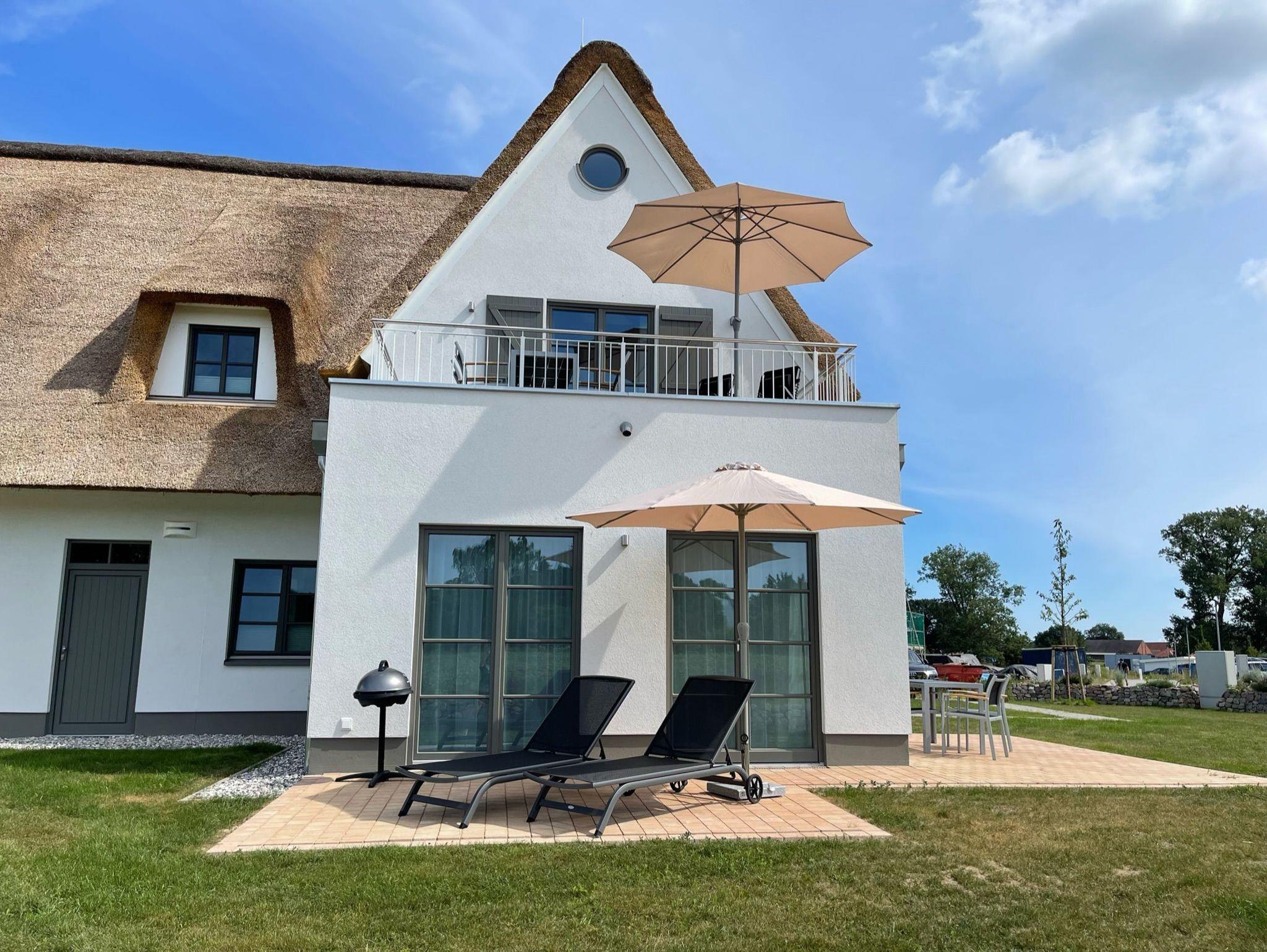 Die Reet gedeckten Häuser wurden in nachhaltiger Holzbauweise errichtet und die Einrichtung ist durch helle sowie freundliche Farben geprägt. Der Blick auf die Haffküste und die umliegende Natur machen Ihren Urlaub einzigartig.