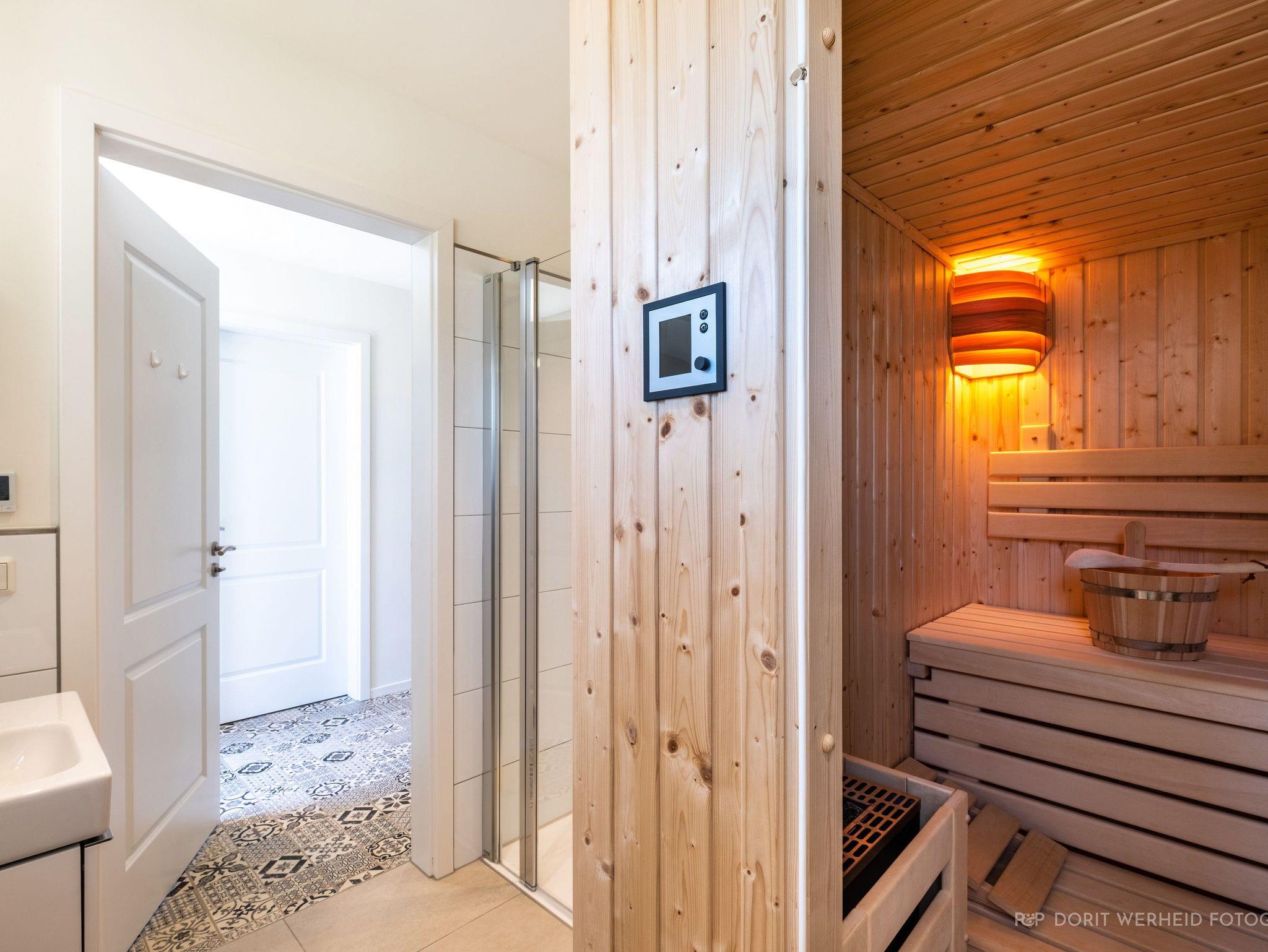 Für den Wellness-Faktor sorgt das Badezimmer mit exklusiver hauseigener Sauna, Waschbecken, bodentiefer Dusche und WC. Durch zwei verschiedene große Terrassen, die einen weiten Blick über die Felder bieten, ist ganztägig Sonnengenuss möglich. Eine Waschmaschine sowie Elektrogrill stehen Ihnen ebenfalls zur Verfügung.