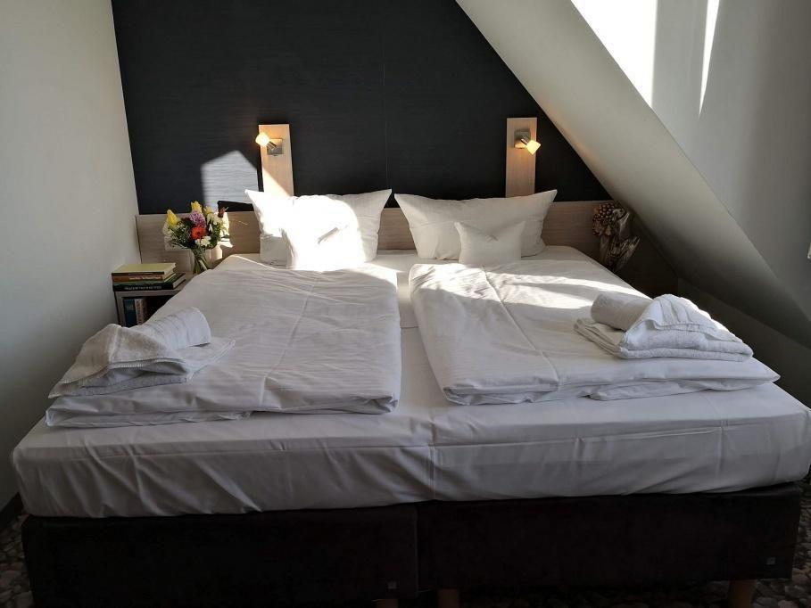 Das DZ Nr. 12 " Bayard " ist ein gemütliches Zimmer im 1.Obergeschoss ( Dachgeschoss ) der ehemaligen Remise von Schloss Stolpe.