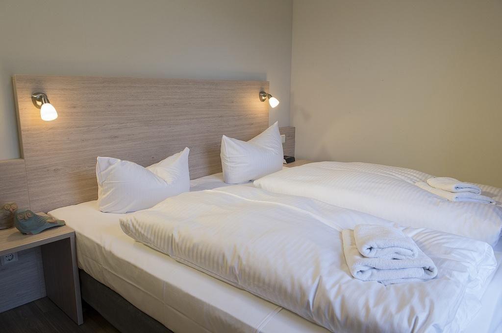 2 Zimmerappartement, für 2 Personen, 1 Schlafzimmer mit Komfortdoppelbett, Bad mit Dusche, Fön, offene Küche mit Geschirrspüler, Westterrasse, Fernseher, WLAN, Mückengitter, Parkplatz