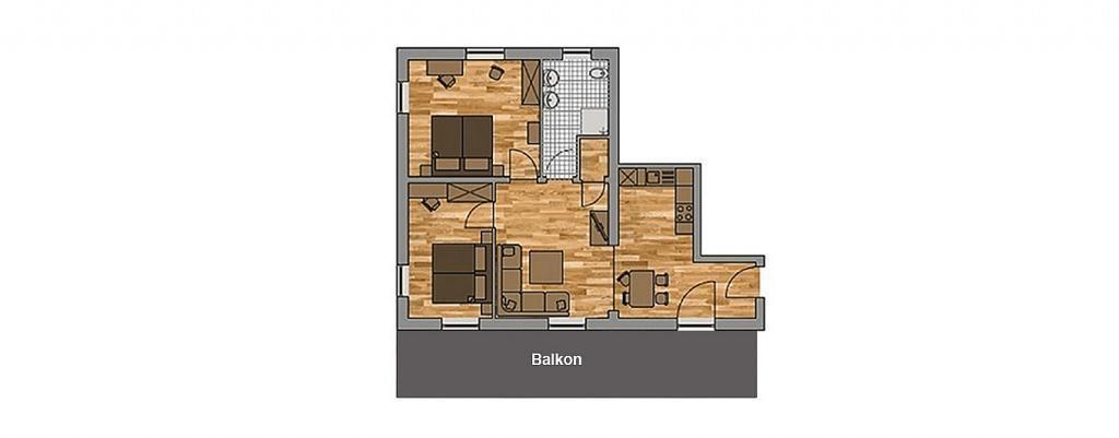 3 Zimmerappartement, für 5 Personen, 2 Schlafzimmer mit Komfortbetten, 1 Schlafcouch im Wohnbereich, Bad mit Dusche, offene Küche mit Geschirrspüler, großer Süd-Westbalkon, Lift, Fernseher, WLAN, Mückengitter, Parkplatz