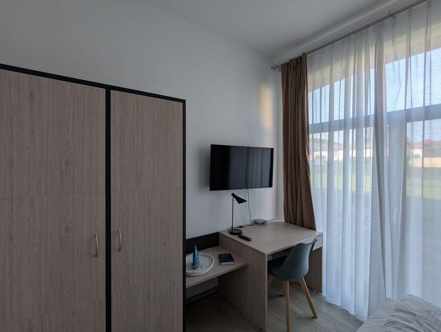 Eine ausziehbare Schlafcouch für bis zu 2 Personen ist vorhanden.