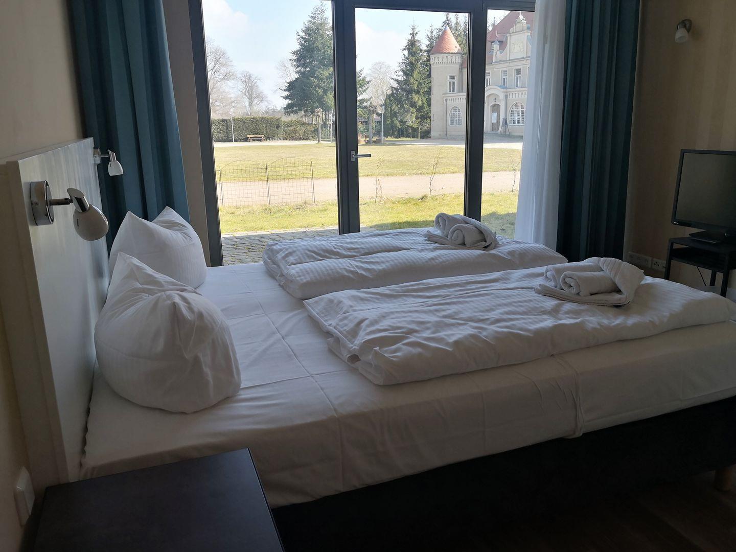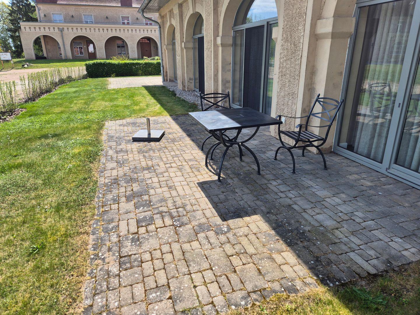 Das Appartement "Kolibri" liegt ebenerdig in der ehemaligen Remise von Schloss Stolpe, ca. 50m von diesem entfernt. Von der Westterrasse haben Sie freien Blick auf das Schloss.