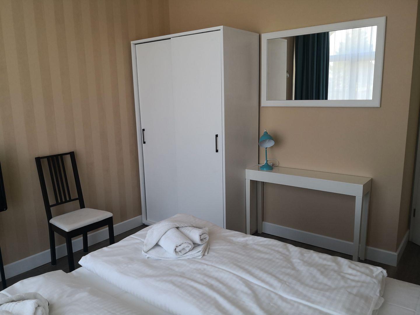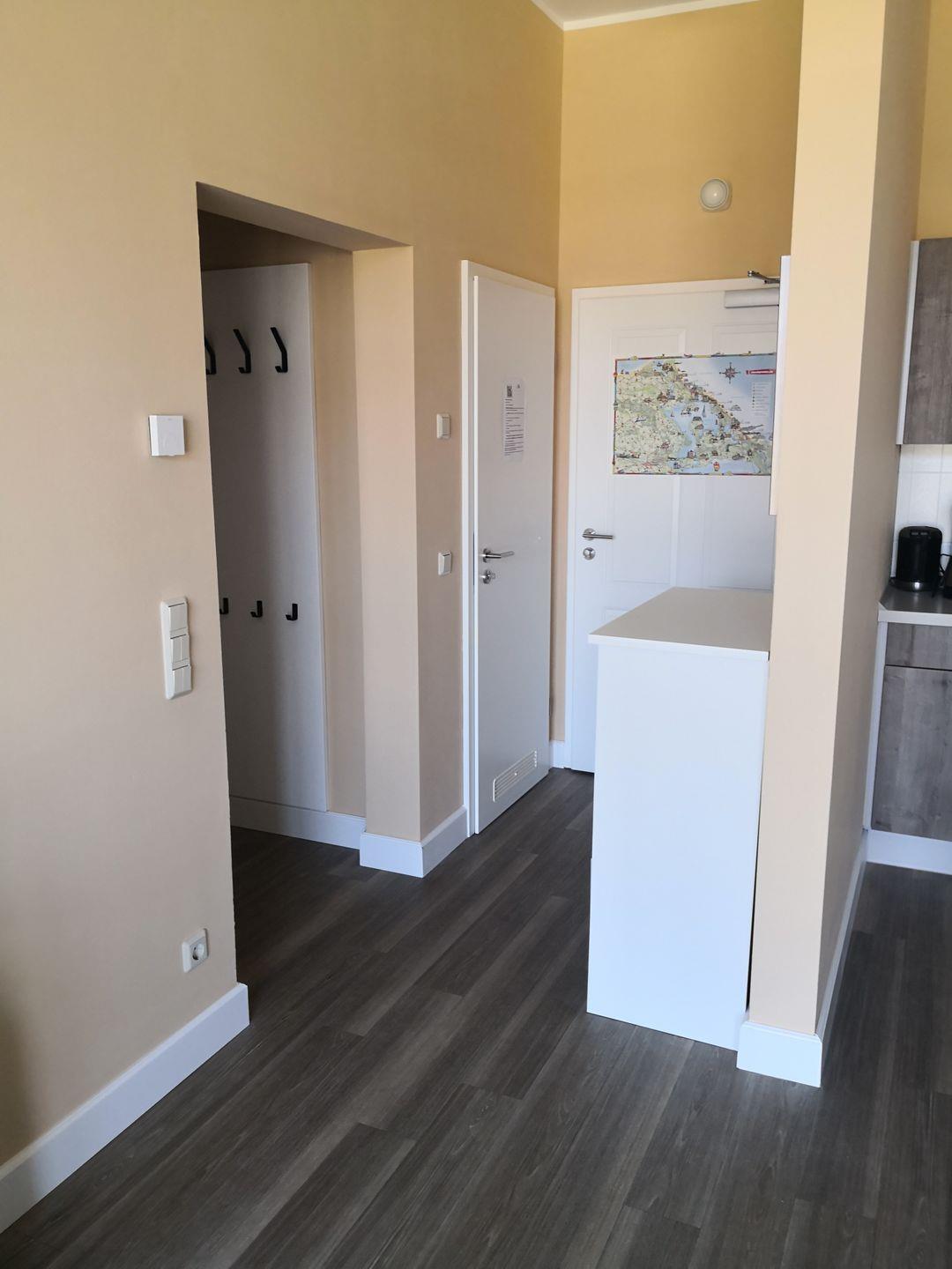 2 Zimmerappartement, bis zu 4 Personen, 1 Schlafzimmer mit Doppelbett, 1 Schlafcouch im Wohnbereich, Bad mit Dusche, offene Küchenzeile mit Geschirrspüler, Westterrasse, Fernseher, WLAN, Parkplatz