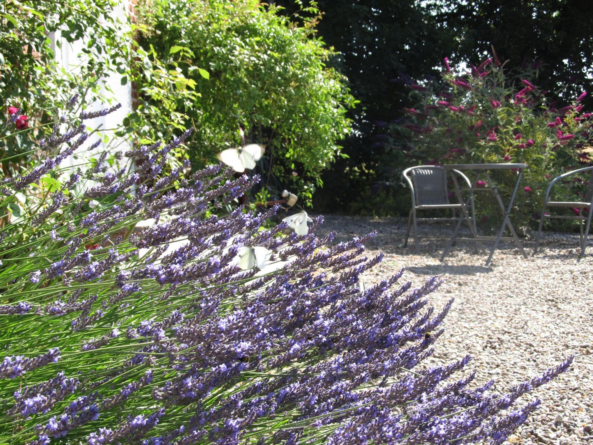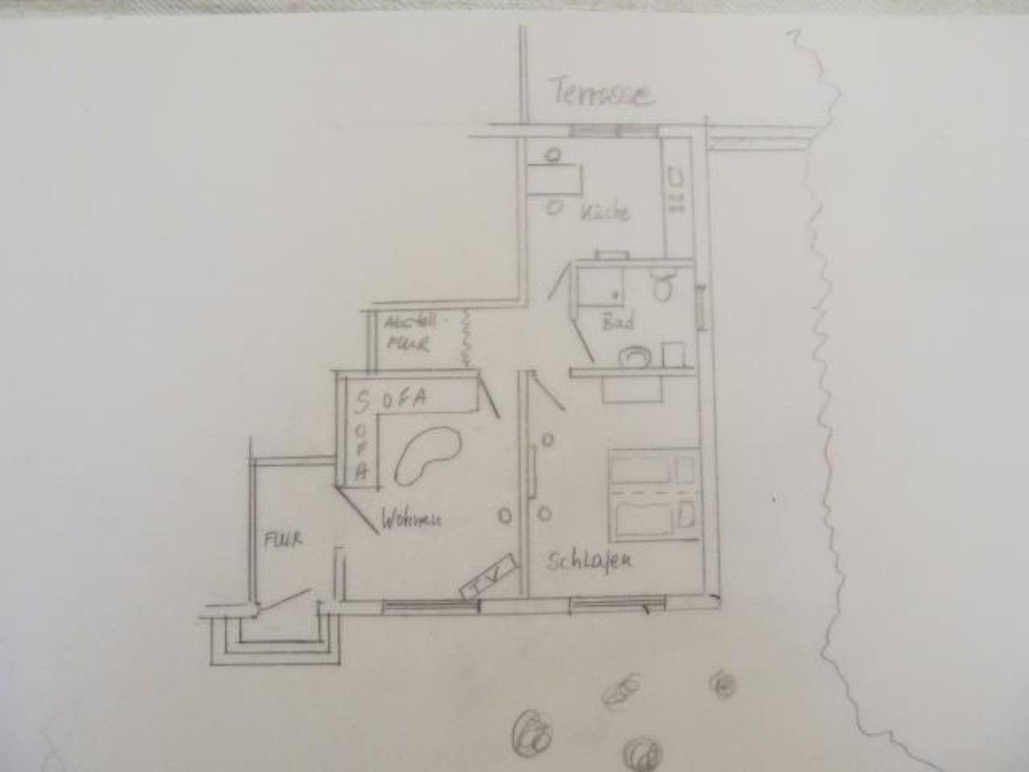 In the right wing of the estate, this holiday flat offers two people a comfortable stay in a living space of 70 square metres. Renovated as a holiday flat in 2014 (and continuously maintained), the entrance area leads to a living room, a separate kitchen with dining area and small terrace, a bedroom with double bed (190x200 cm) and a shower room. In the bedroom you will find a double bed surrounded by two bedside tables with reading lamps on both sides. In the morning, the first rays of sunshine greet you through a generously proportioned window. The window can of course be darkened with a large curtain if desired. The bedroom has a parquet floor and carpet. The bathroom is a shower room with a shower cubicle, a WC, a washing machine and a washbasin with mirror. In the living room you can relax after a day out on a very comfortable leather couch and be entertained by a flat screen TV with satellite connection. A stereo system accompanies your stay with your favourite music. The spacious kitchen is equipped with a dishwasher, cooker with four-zone hob and oven, fridge with freezer compartment and small electrical appliances such as a coffee machine, kettle and toaster. Inside the kitchen there is a dining area with two chairs by the window. An outside door leads through the kitchen to a terrace. You can quickly move your meal outside on the terrace. Use the garden furniture and the barbecue for a barbecue evening together. A car park is available on the property. The landlord can also arrange the hire of bicycles.
