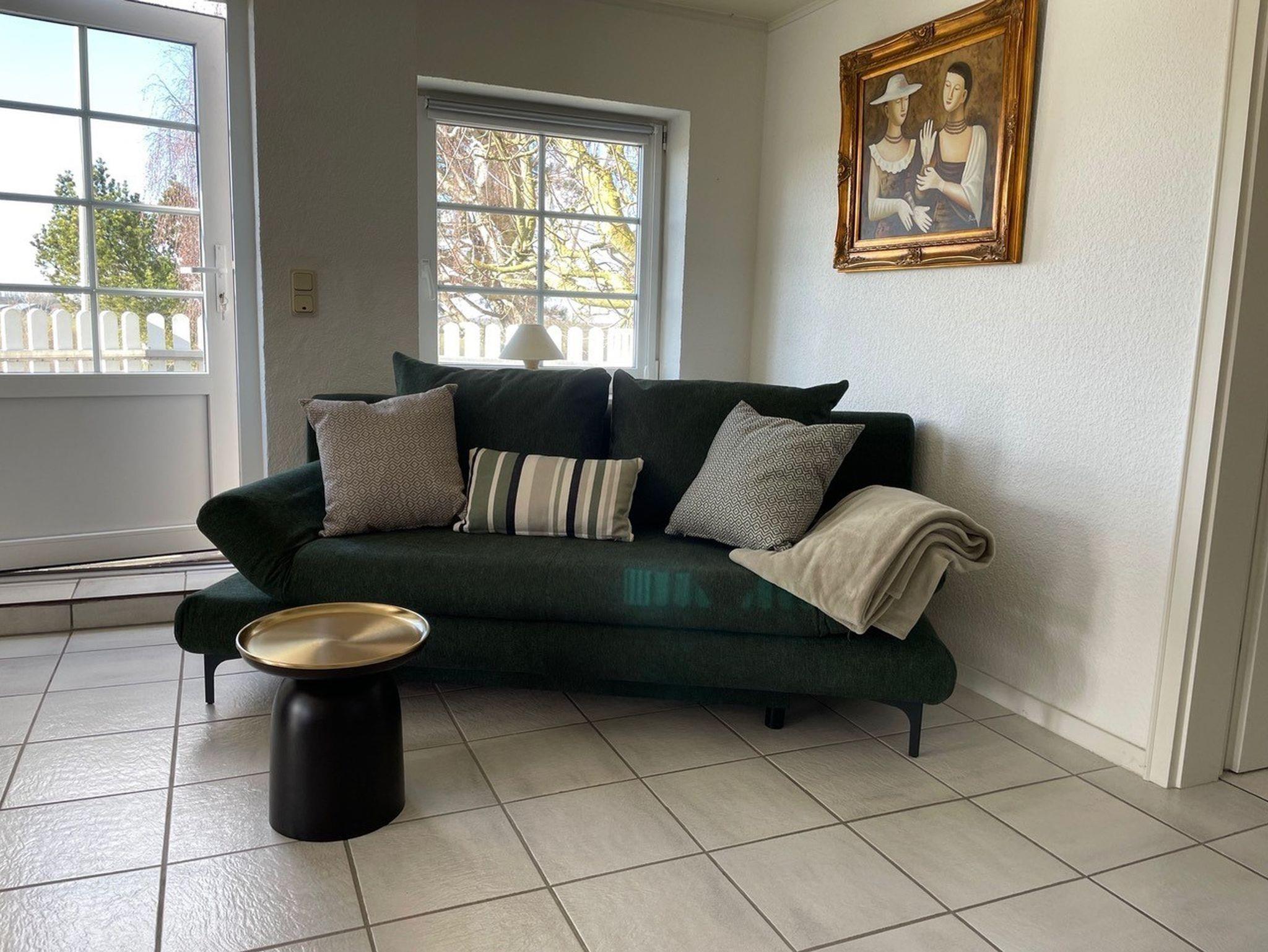 Das Ferienhaus Alte Mühle für bis zu 8 Personen (plus 1 Kleinkind) ist im großzügigen Landhausstil gestaltet. Ein besonderer Hingucker sind die zahlreichen Bilder im modernen Stil an vielen Wänden.