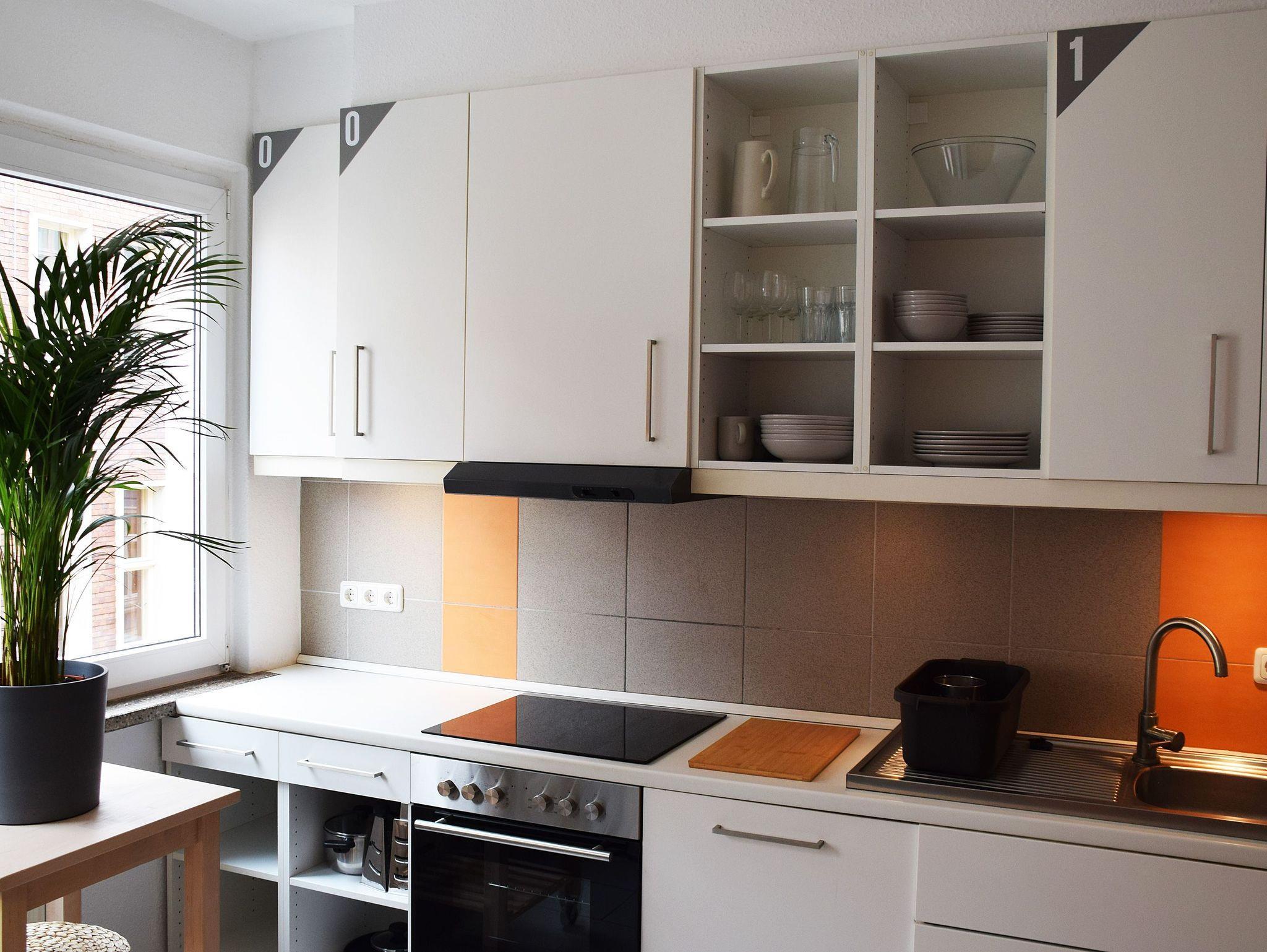 - Küche (Backofen, Herd, Spülmaschine, Kaffeemaschine, Wasserkocher, Toaster, je Zimmer ein Kühlschrank)