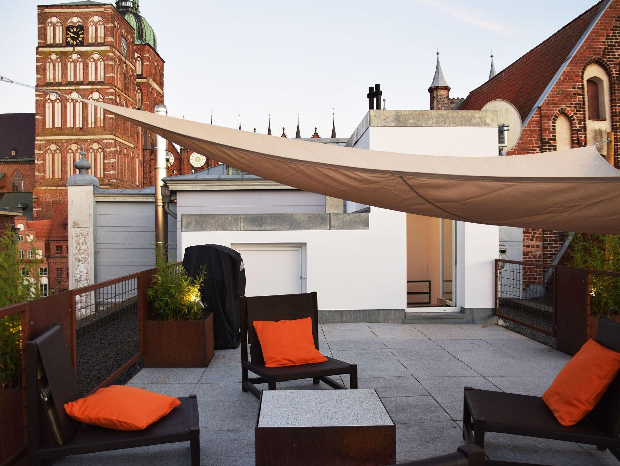 Betrachten Sie die Dachlandschaft unserer Vergangenheit aus der Vogelperspektive. Das Altstadt-Kreativquartier hat eine Dachterrasse und vier separate Doppelzimmer auf zwei Etagen, die sich zwei Küchen und Bäder teilen. Sie können Ihre Mahlzeiten selbst zubereiten und sich von Ihren Mitreisenden inspirieren lassen. Großformatige Bilder schmücken die Wände und regen zum Malen an. Bei Bedarf kann ein Kinderbett (bis 3 Jahren) gestellt werden. Auch Waschmaschine und Trockner sind vorhanden. Gelegen zwischen Altem Markt und Kniepertor befinden Sie sich mitten im Geschehen. Restaurants und Cafés, Läden, ein Discounter, das Theater und mehrere Museen, alles ist fußläufig zu erreichen. Öffentliche Verkehrsmittel und ein Parkhaus sind nur 200 Meter entfernt. Fahrräder können verschlossen und geladen werden. Wir sind zentral, kreativ und hilfsbereit und freuen uns auf Ihren Besuch.