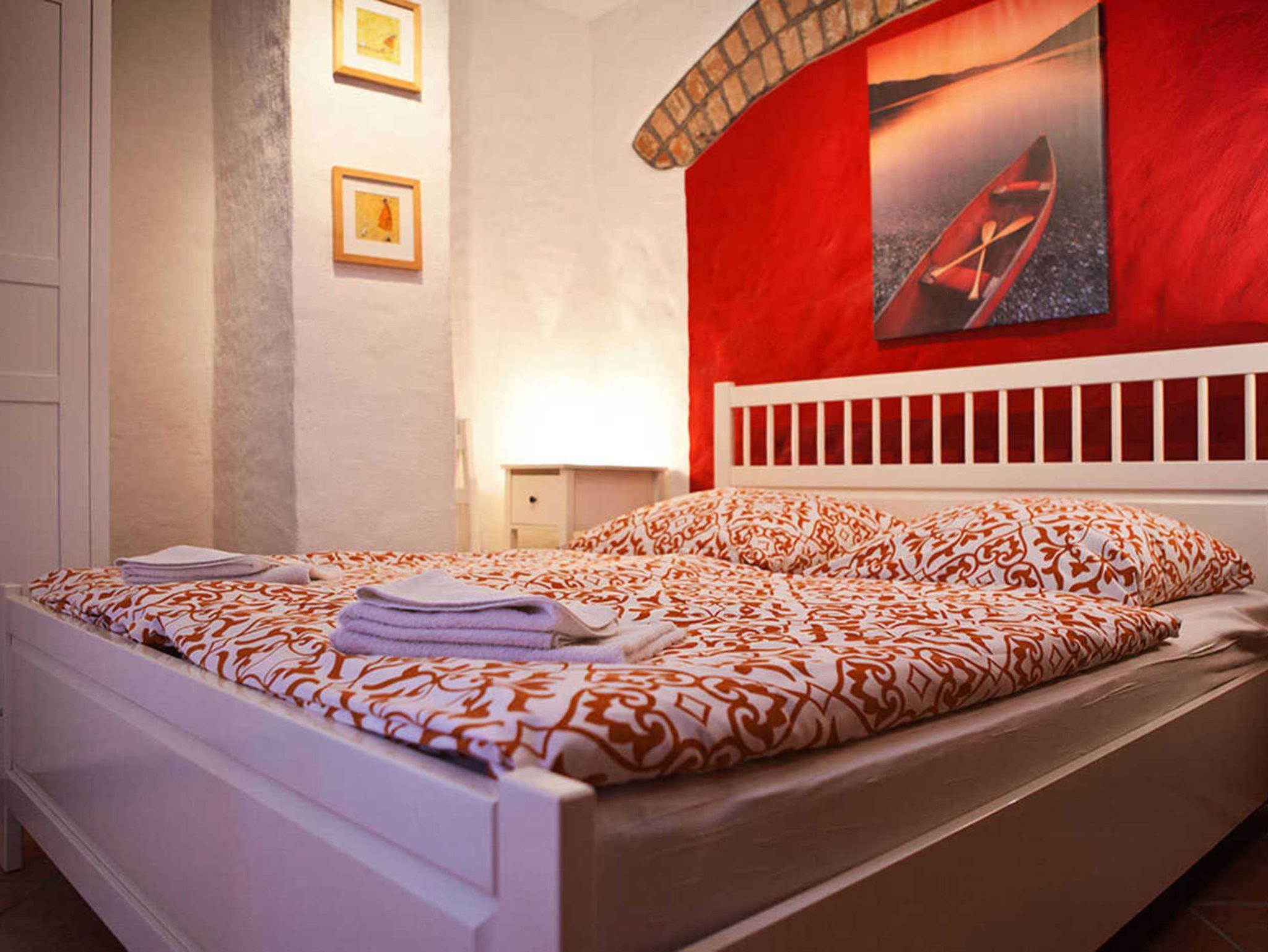 Schlafzimmer: Doppelbett 1,60 x 2,00 m, Kleiderschrank, Balkon SW-Seite