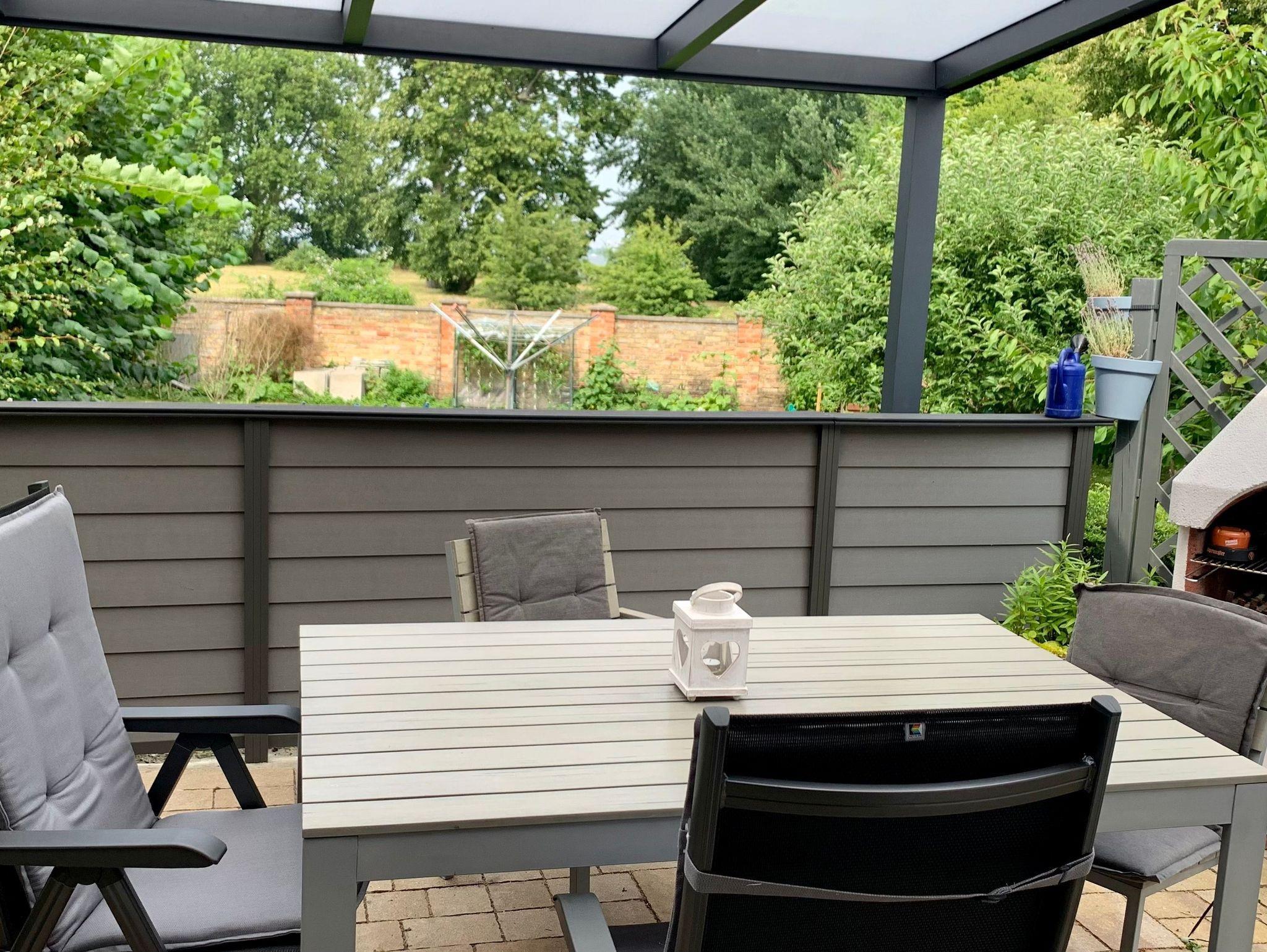 Fahrräder können auf der überdachten Terrasse untergestellt werden. Für E-Fahrräder steht hier eine Lademöglichkeit zur Verfügung.