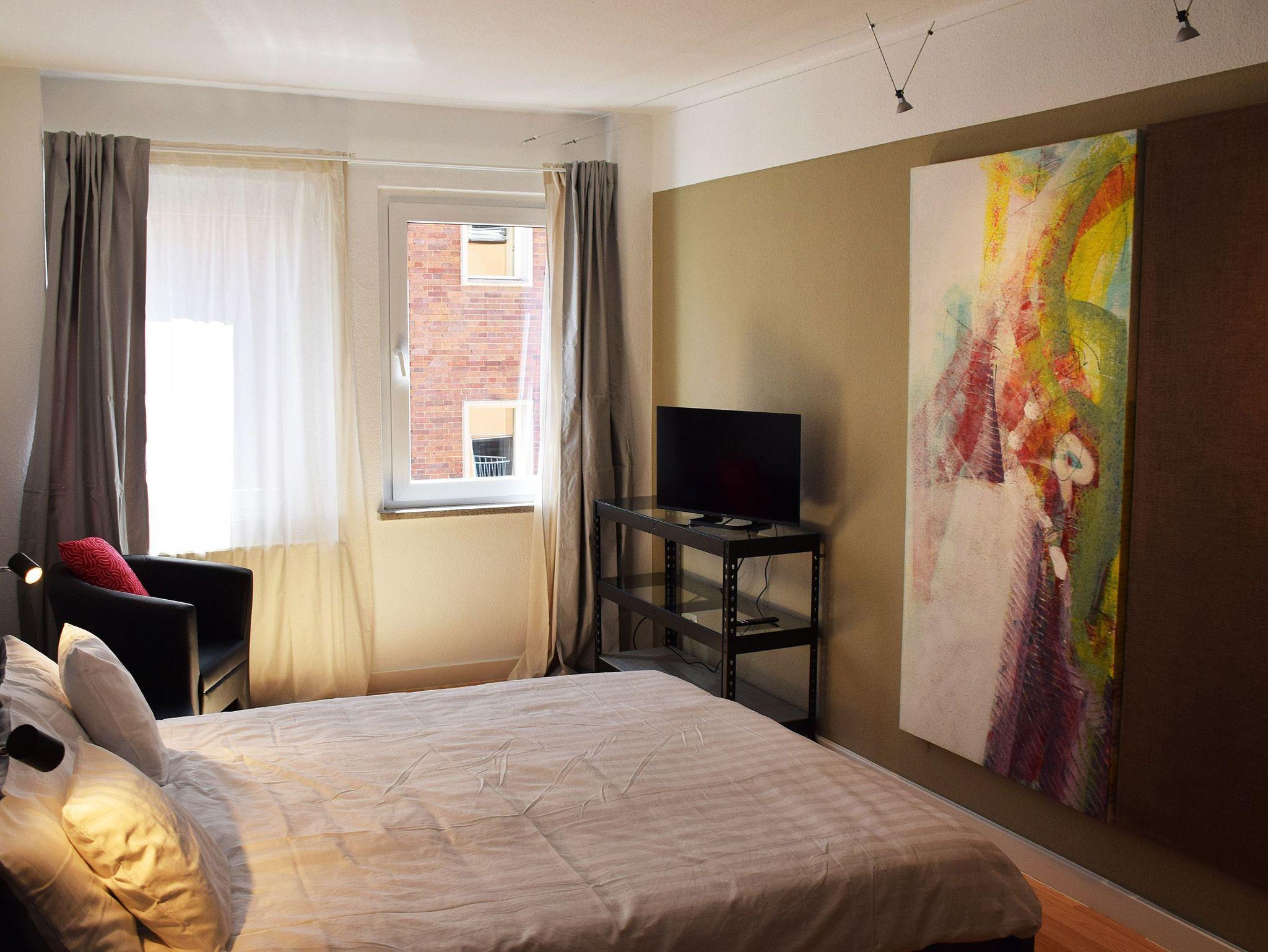 Betrachten Sie die Dachlandschaft unserer Vergangenheit aus der Vogelperspektive. Das Altstadt-Kreativquartier hat eine Dachterrasse und vier separate Doppelzimmer auf zwei Etagen, die sich zwei Küchen und Bäder teilen. Sie können Ihre Mahlzeiten selbst zubereiten und sich von Ihren Mitreisenden inspirieren lassen. Großformatige Bilder schmücken die Wände und regen zum Malen an. Bei Bedarf kann ein Kinderbett (bis 3 Jahren) gestellt werden. Auch Waschmaschine und Trockner sind vorhanden. Gelegen zwischen Altem Markt und Kniepertor befinden Sie sich mitten im Geschehen. Restaurants und Cafés, Läden, ein Discounter, das Theater und mehrere Museen, alles ist fußläufig zu erreichen. Öffentliche Verkehrsmittel und ein Parkhaus sind nur 200 Meter entfernt. Fahrräder können verschlossen und geladen werden. Wir sind zentral, kreativ und hilfsbereit und freuen uns auf Ihren Besuch.