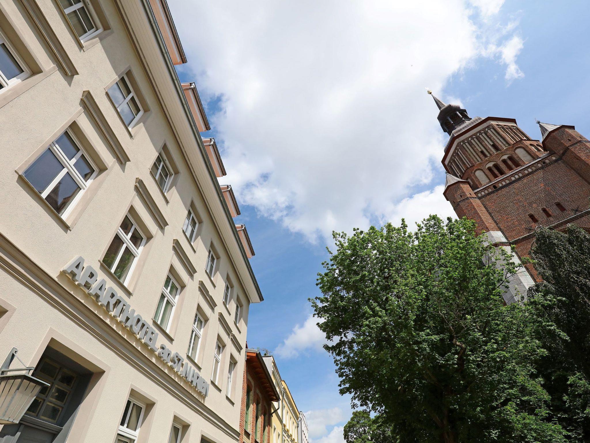 Genießen Sie Ihren einzigartigen Aufenthalt in den Apartments an Sankt Marien mit seinen individuell gestalteten und modern ausgestatteten Apartments. Das Apartmenthaus liegt mitten in der historischen Altstadt von Stralsund in der Nähe des Neuen Marktes, in unmittelbarer Nähe der imposanten St. Marienkirche, die weit über die Dächer der Altstadt ragt. Die gemütlichen Ein- bis Drei-Zimmer-Wohnungen verteilen sich auf vier Etagen und haben einen Blick auf den liebevoll gestalteten Innenhof oder die imposante St. Marienkirche.