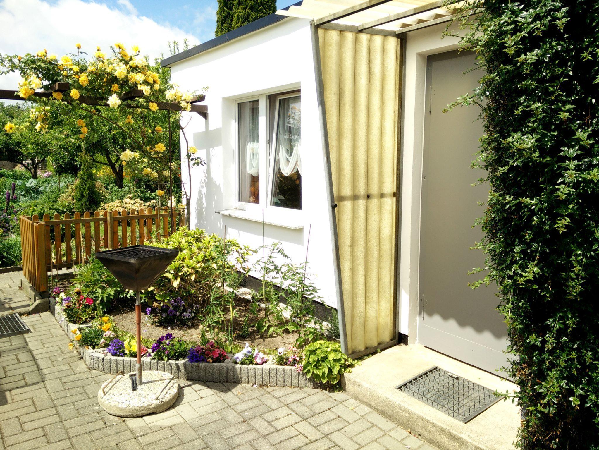 Es stehen eine kleine 1-Raum-Maisonettewohnung und eine 2-Raum-Ferienwohnung zur Verfügung. Im Garten gibt es eine sonnige Sitzecke mit Grillmöglichkeit und Hollywoodschaukel.