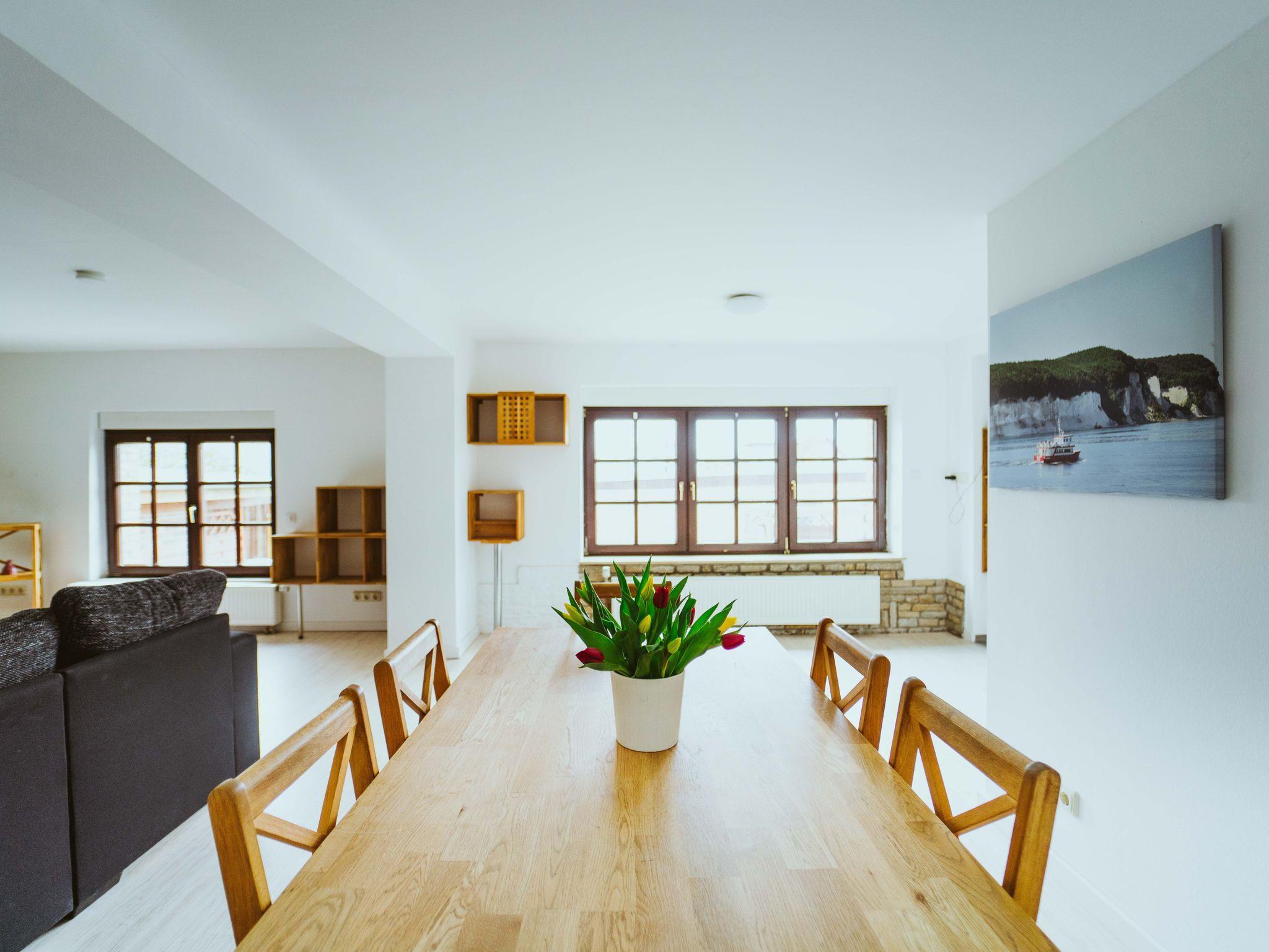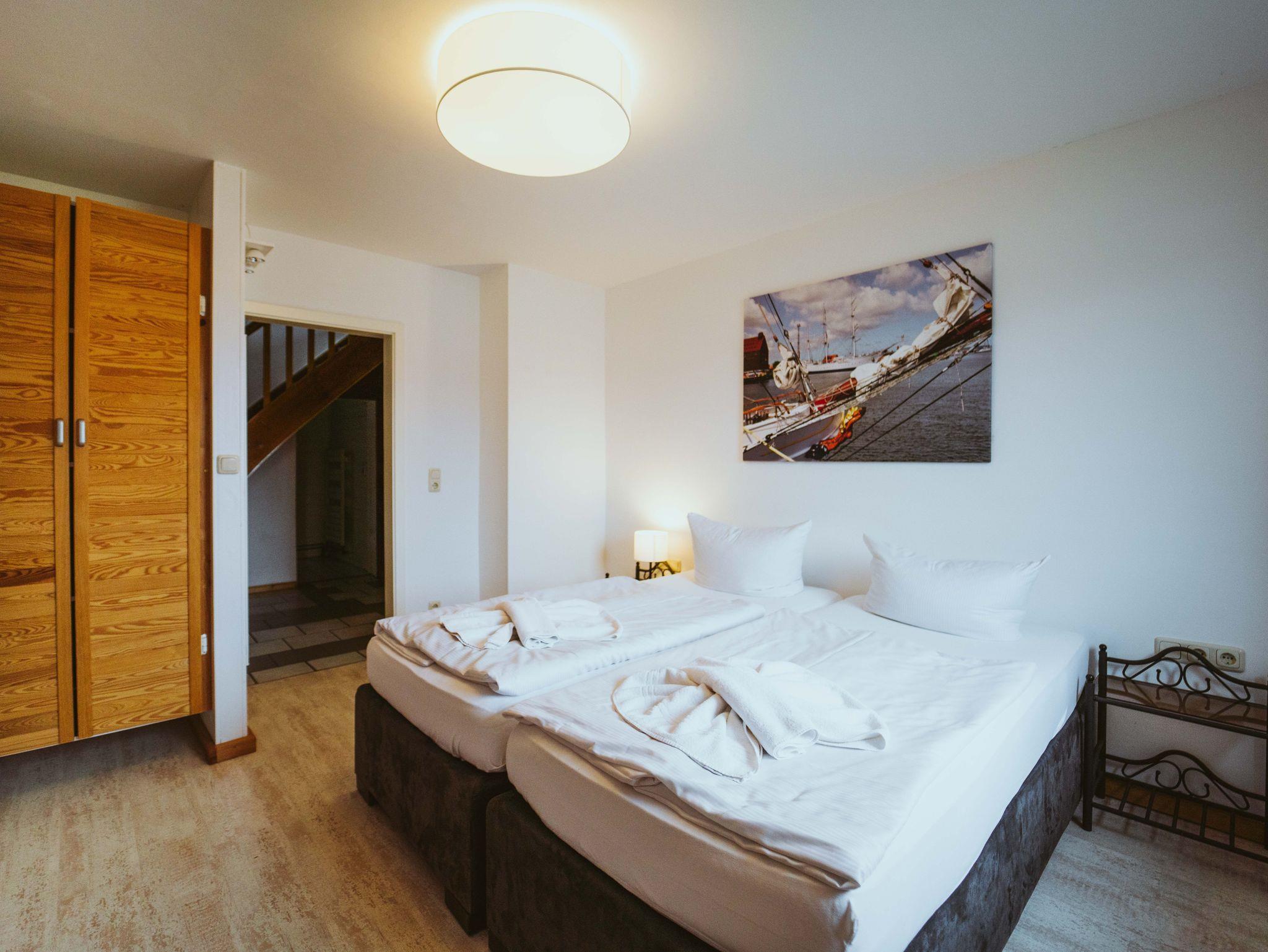Das wahrscheinlich größte Apartment in Stralsund! Diese Ferienwohnung verfügt über 4 Schlafzimmer (davon 2 im Obergeschoss), 1 großes Wohnzimmer, ein Wannenbad sowie eine luxuriöse offene Küche. Das Apartment verfügt über 10 feste Betten und kann ggf. durch Reisebetten aufgestockt werden. Im Wohnzimmer und im Essbereich der Küche gibt es einen Kamin.