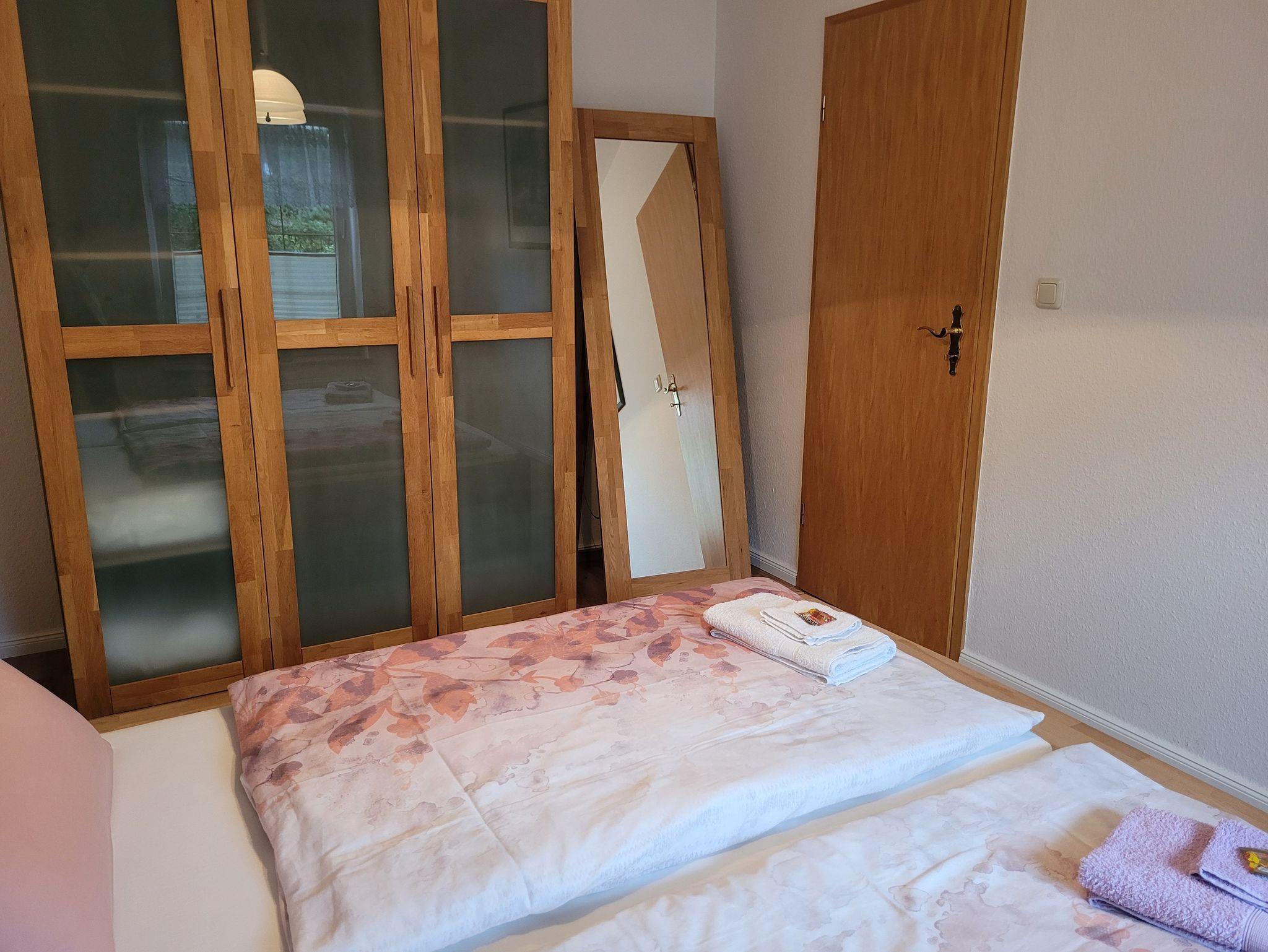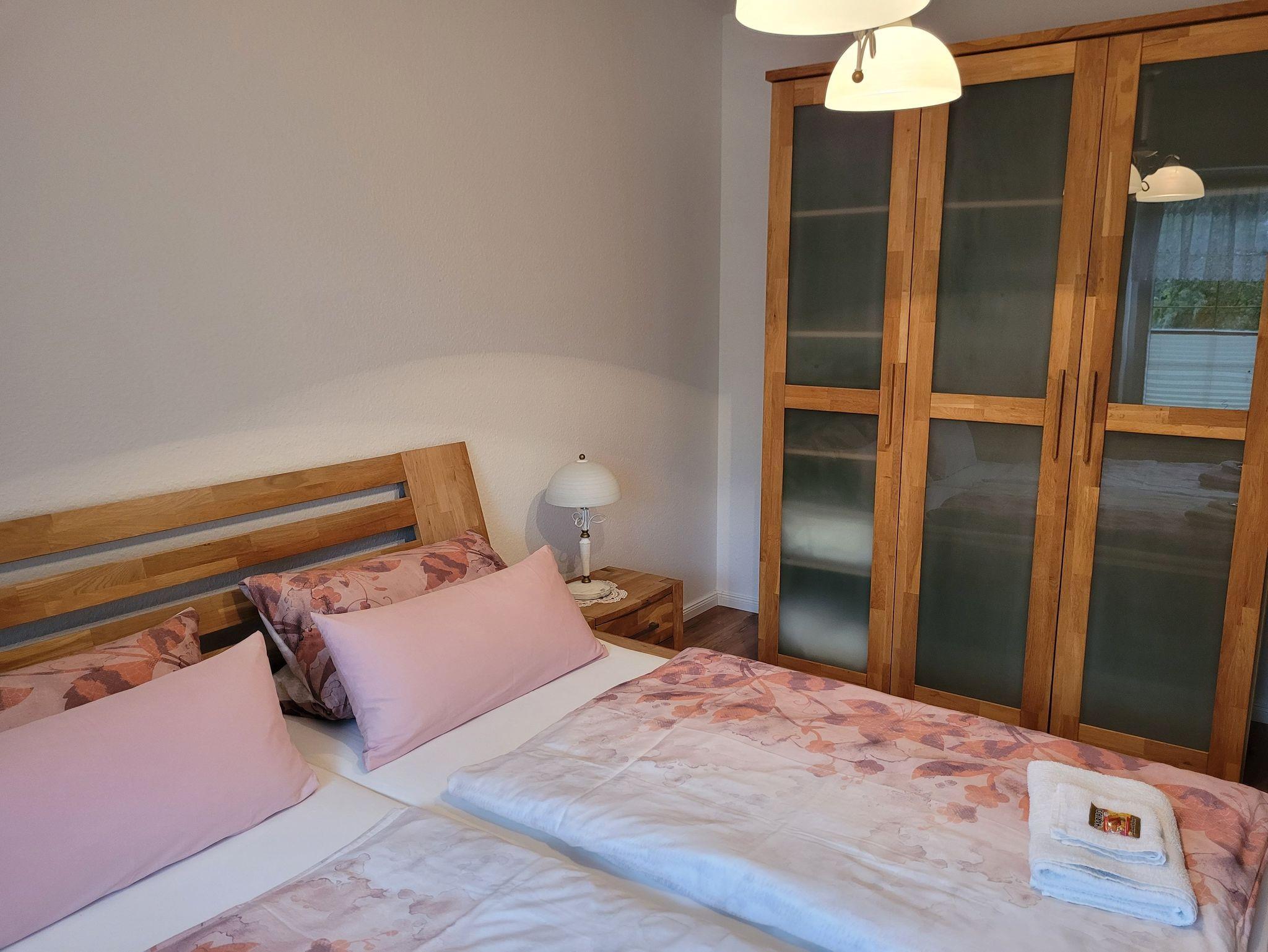 Im Schlafzimmer befindet sich ein Doppelbett (1,60 x 2,00) und ein großer Kleiderschrank.