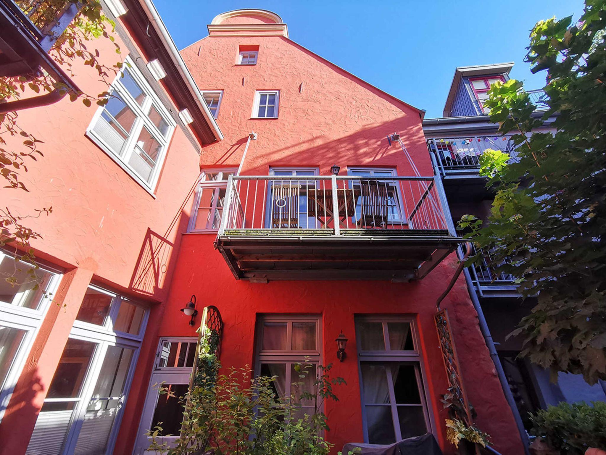 Unsere Ferienwohnung Achterdeck (ca 50 qm) ist ideal für 2 Personen, befindet sich in ruhiger Lage in der Frankenstraße 52 in Stralsund im 1. OG. Das Herzstück der Ferienwohnung ist die offene Küche und der Blick vom Balkon auf den historischen begrünten Innenhof.