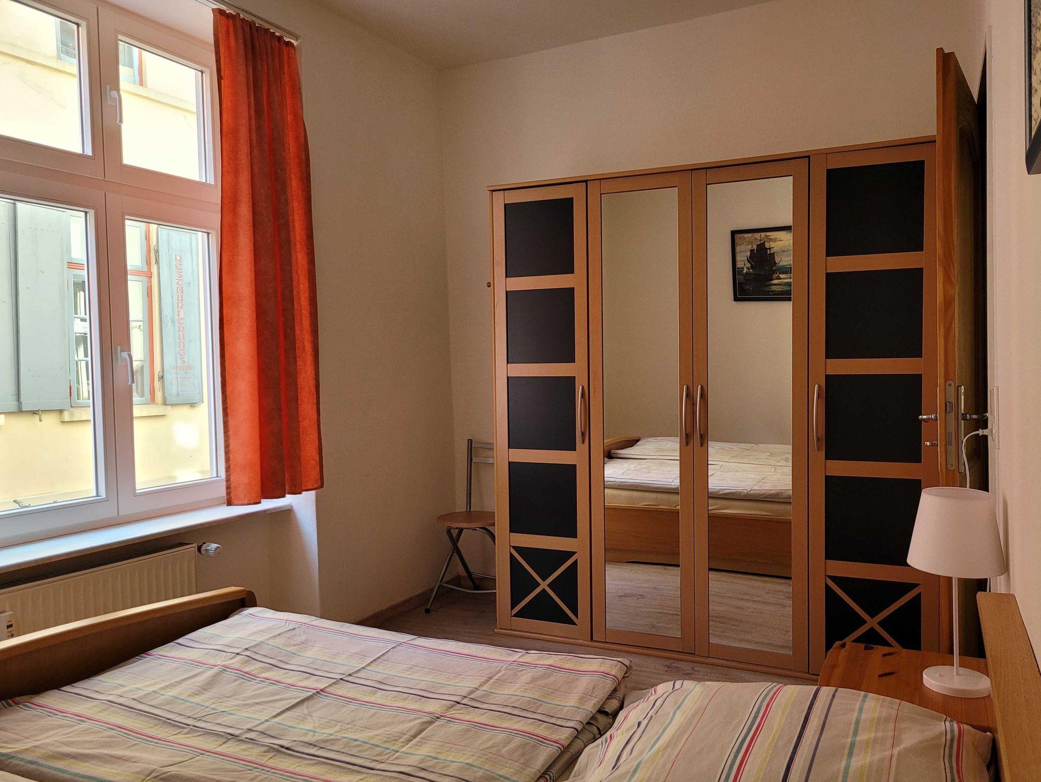 Die Ferienwohnung (60qm) für maximal 4 Personen befindet sich im EG in der Langenstraße 33 in einem circa 150 Jahre alten denkmalgeschützten Haus. Sie verfügt über eine komplett ausgestattete Wohnküche mit Essgarnitur, ein Schlafzimmer mit Doppelbett und Kleiderschrank, ein Schlafzimmer mit getrennten Betten sowie Bad mit Dusche, WC und Waschmaschine.