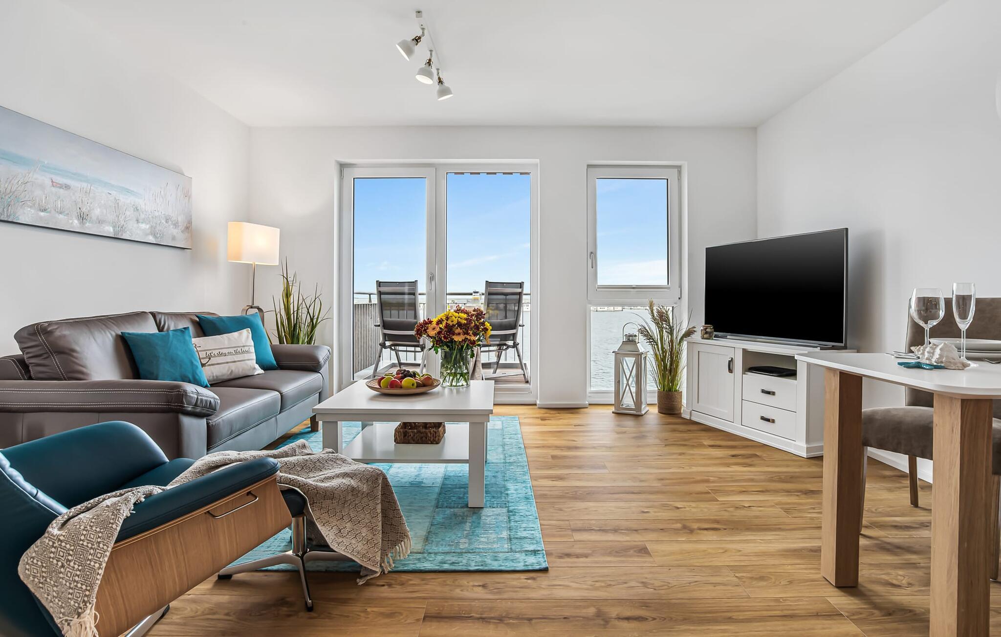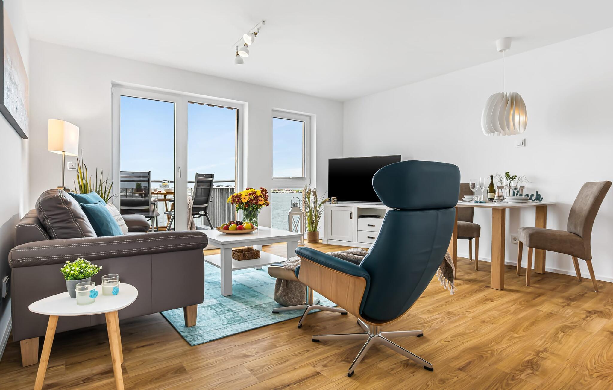 STRAND SEGLER ferielejligheden er til to personer, men jeres hund er også en velkommen gæst her. Ferielejligheden ligger centralt på den travle havnepromenade med frit udsyn til sejl- og lystbådehavnen. Promenaden med sine små fristende butikker og et velassorteret EDEKA-marked med bageri ligger bogstaveligt talt for gæstens fødder og indbyder til slentretur og indkøb. Sandstranden Weidefelder ligger i umiddelbar nærhed og er et MUST! Her er smukt på alle tider af året, ikke kun når strandstolene kalder om sommeren. I kan tage endeløse gåture her på den åbne Østersø og lade hverdagen bag jer. Moderne, høj kvalitet og komfortabelt møbleret, gæsten føler sig godt tilpas fra første øjeblik og kan straks glemme hverdagens stress. Det veludstyrede køkken gør enhver madlavningsoplevelse til en fælles oplevelse. Det perfekt udstyrede tekøkken lader intet tilbage at ønske, og det er sjovt at tilberede måltider, fordi udsigten over havnen, de flydende huse og den fjerne Østersø ledsager kokken konstant. At nyde måltidet eller en kop kaffe med frisk opskummet mælk senere på altanen er uden tvivl en særlig form for ferieoplevelse I soveværelset lover en komfortabel dobbeltseng med boxmadras en afslappende søvn, og et fjernsyn bringer de seneste nyheder, hvis det ønskes. Badeværelset er nænsomt indrettet og forkæler gæsterne med bruseniche i gulvniveau, som sikrer en afslappet start på dagen. jeres pakke inkluderer en parkeringsplads ved huset og en elevator, der bringer jer komfortabelt til anden sal. Vores favoritsted: at se den farverige havnepromenade på balkonen ved solnedgang med en kold drink i hånden... Bemærk venligst: OstseeResort Olpenitz er meget populært, og der bygges fortsat i parken. Ikke desto mindre kan I se frem til en 5-stjernet standard og et førsteklasses ophold. Byggeaktiviteterne kommer ikke til at forstyrre jer på ferien, og derfor gives der ikke yderligere afslag i prisen.