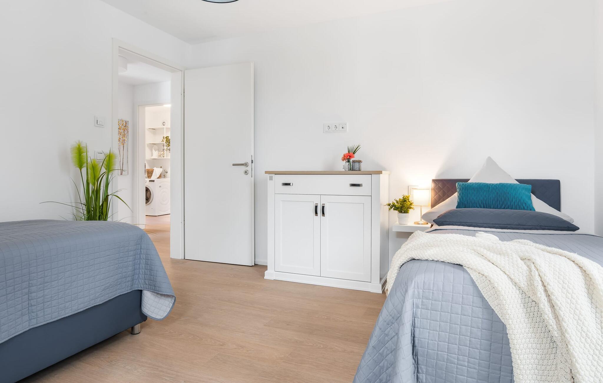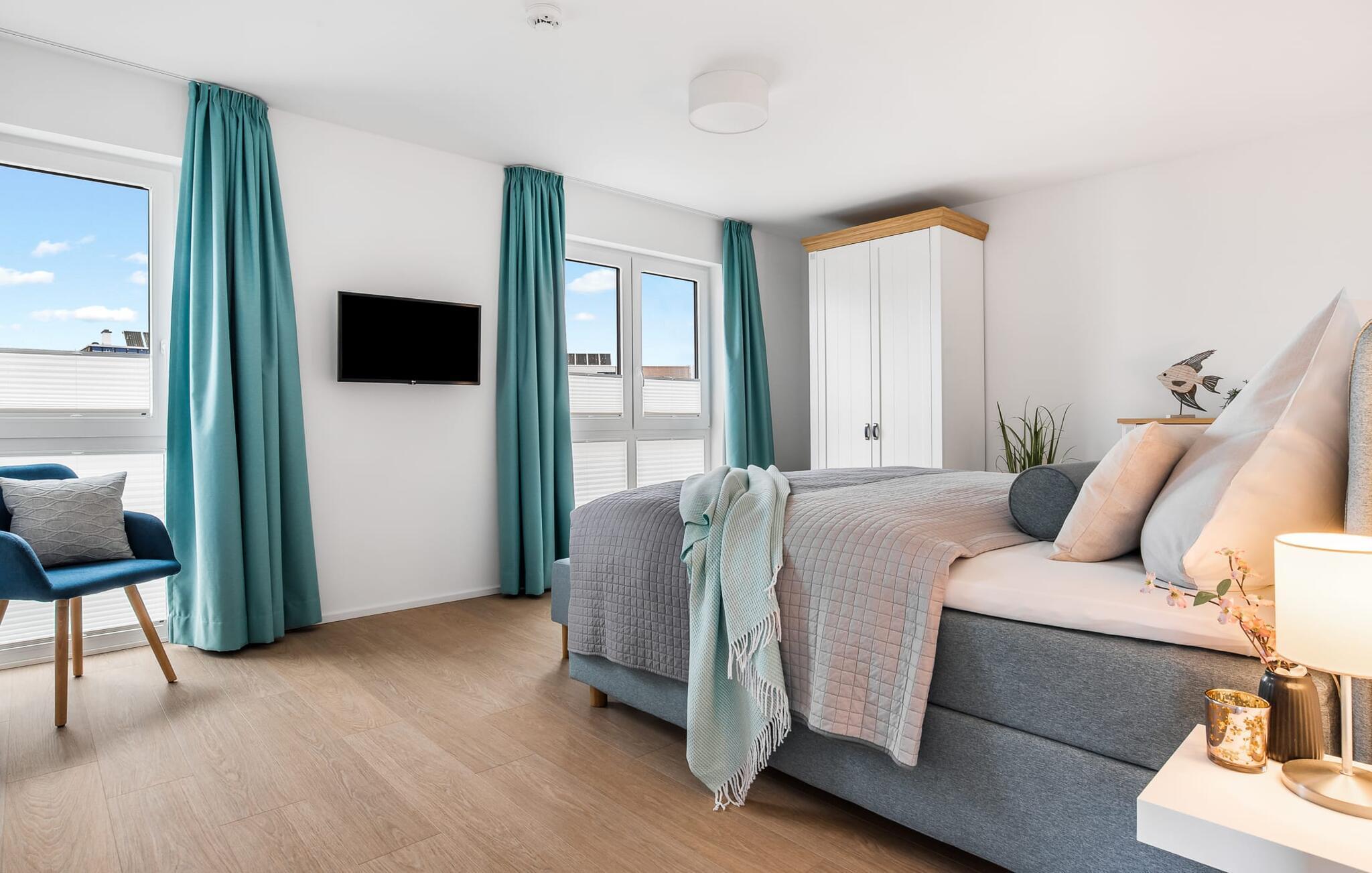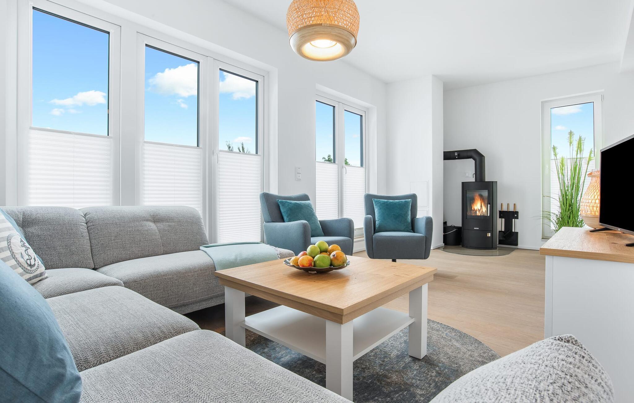 Den rummelige maisonette-ferielejlighed STRANDDECK til 6 personer ligger på første og anden sal og tilbyder direkte udsigt over de naturbevarende strandenge og marker. Sandstranden Weidefelder med kiosk, restaurant og strandstole ligger i gåafstand og er et attraktivt rejsemål på alle tider af året. Minigolfbanen med maritimt tema ligger også i umiddelbar nærhed og glæder både store og små. Når I træder ind i ferielejligheden på første sal, begynder nedbremsningen fra allerførste øjeblik. I er direkte i lejlighedens afslapningsområde. Lejlighedens tre soveværelser er placeret på denne etage. Uanset hvilket soveværelse I vælger, kan I være sikker på en afslappende søvn. Et soveværelse er udstyret med en dobbeltseng og et fjernsyn. De to andre soveværelser har hver to enkeltsenge til afslappende nætter på ferie. På denne etage er der også et veludstyret badeværelse med bruser i gulvniveau og infrarød sauna. En oase af velvære, der sikrer ren afslapning i hver sæson. En gang på anden sal lever STRANDDECK op til sit navn. Indrettet til høj standard i landstedsstil med maritime elementer, bydes I velkommen af en vinduesfront fra gulv til loft med tilstødende terrasse og udsigt til de naturbeskyttede strandenge. At komme ind og straks føle sig hjemme er én ting. At slappe af i den hyggelige opholdsstue, nyde naturens fred og ro ud af vinduet eller se tv er ren afslapning og afslapning! Hverdagen bliver mere og mere fjern... Skulle vejret nogensinde blive nordisk, vil pejsen med sin brølende ild give yderligere hygge. Det integrerede køkken er perfekt udstyret, og det er sjovt at lave mad sammen. Så nyd de færdige lækkerier på terrassen, som også er udstyret til høj standard, eller start en hyggelig grillaften... Det er ren ferie. Direkte fra opholdsområdet kommer man ind på den store terrasse med syd-vest orientering. Vender mod bagsiden med udsigt til de naturbevarende strandenge, Østersøen, marker og havet, er hyggelige timer garanteret. Et andet komplet badeværelse med bruser og badekar afrunder ideelt set hele pakken til en afslappende ferie. Foran ferielejligheden finder I jeres egen parkeringsplads. Vores favoritsted: Afslut en vidunderlig dag på terrassen med en klar udsigt over naturreservatet mod Østersøen. Bemærk venligst: OstseeResort Olpenitz er meget populært, og der bygges fortsat i parken. Ikke desto mindre kan I se frem til en 5-stjernet standard og et førsteklasses ophold. Byggeaktiviteterne kommer ikke til at forstyrre jer på ferien, og derfor gives der ikke yderligere afslag i prisen.